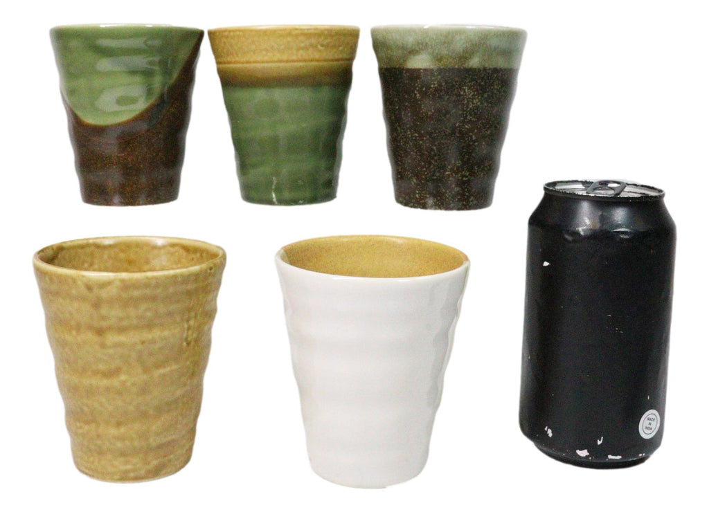 Abstract Art Tenmoku Glazed Ceramic 10oz Coffee Tea Cup Set of 5 Made In Japan