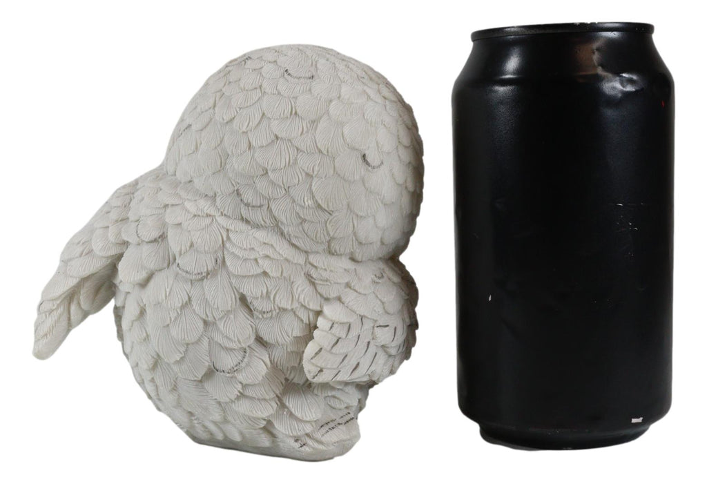 • Create a natural or magical theme in your home or garden with this Snowy Baby Owl figurine. The resin statue is painted in white with brown accenting, and it is furnished with glass eyes for ultra realism.