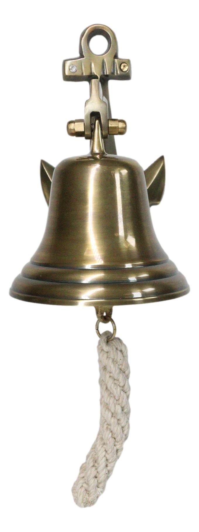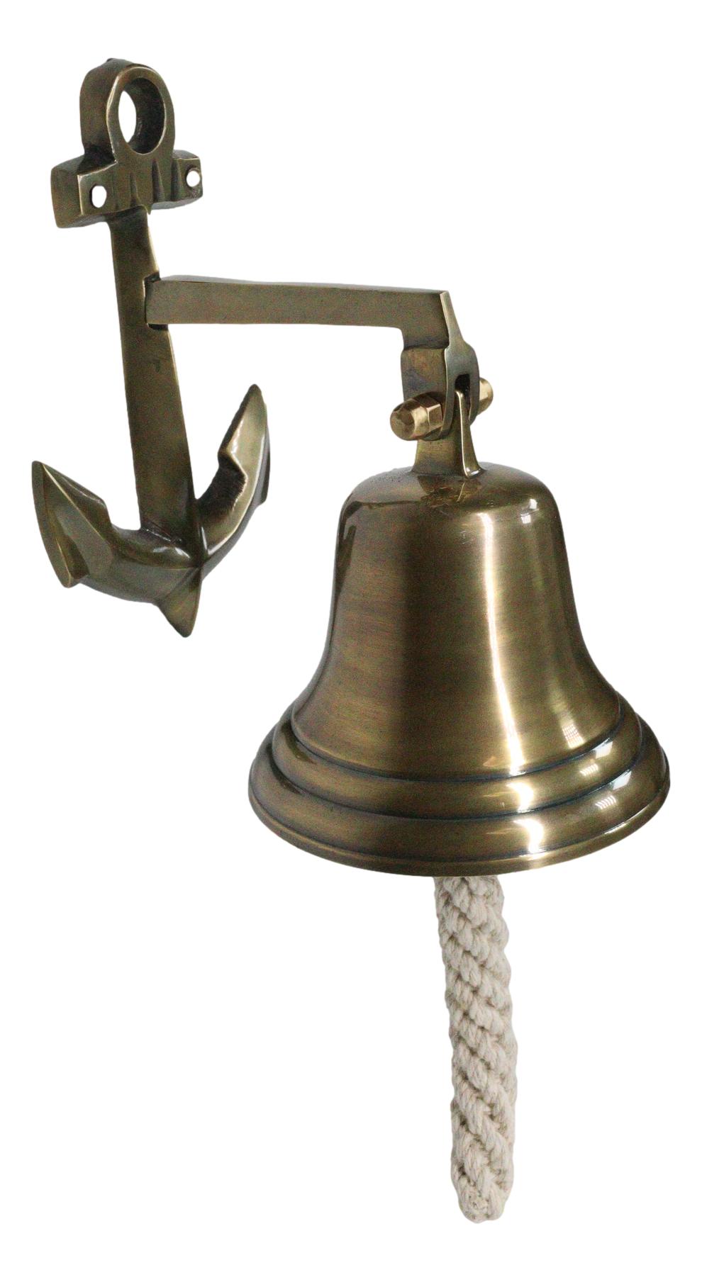 • This Sailor's Anchor Bell measures 13.5" tall (From top of the anchor to the bottom of rope), 7" Deep (from the wall) and 5" Wide approximately. The sculpture weighs about 15 ounces. • This Sailor's Anchor Bell is made of aluminum, hand painted and polished individually with antiqued brass finish. Color tone may vary slightly from pictures. • Add a touch of classic maritime charm to your home or outdoor space with this Antiqued Brass Color Finish Sailor's Anchor Bell. Featuring a beautifully detailed anchor design and a rich antiqued brass look, this lightweight yet durable aluminum bell delivers a clear, resonant ring that's both functional and decorative. Perfect for nautical-themed décor, patios, gardens, entryways, or as a distinctive dinner bell, it brings timeless seafaring style and coastal character wherever it's displayed. • Props in photos are not included with the item.