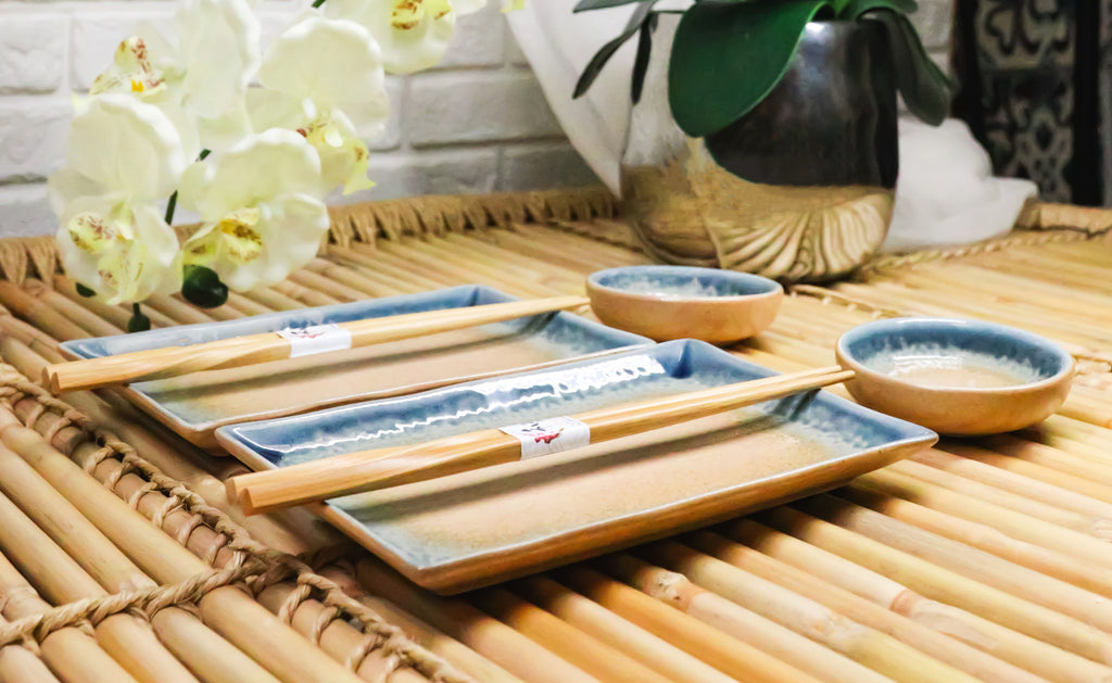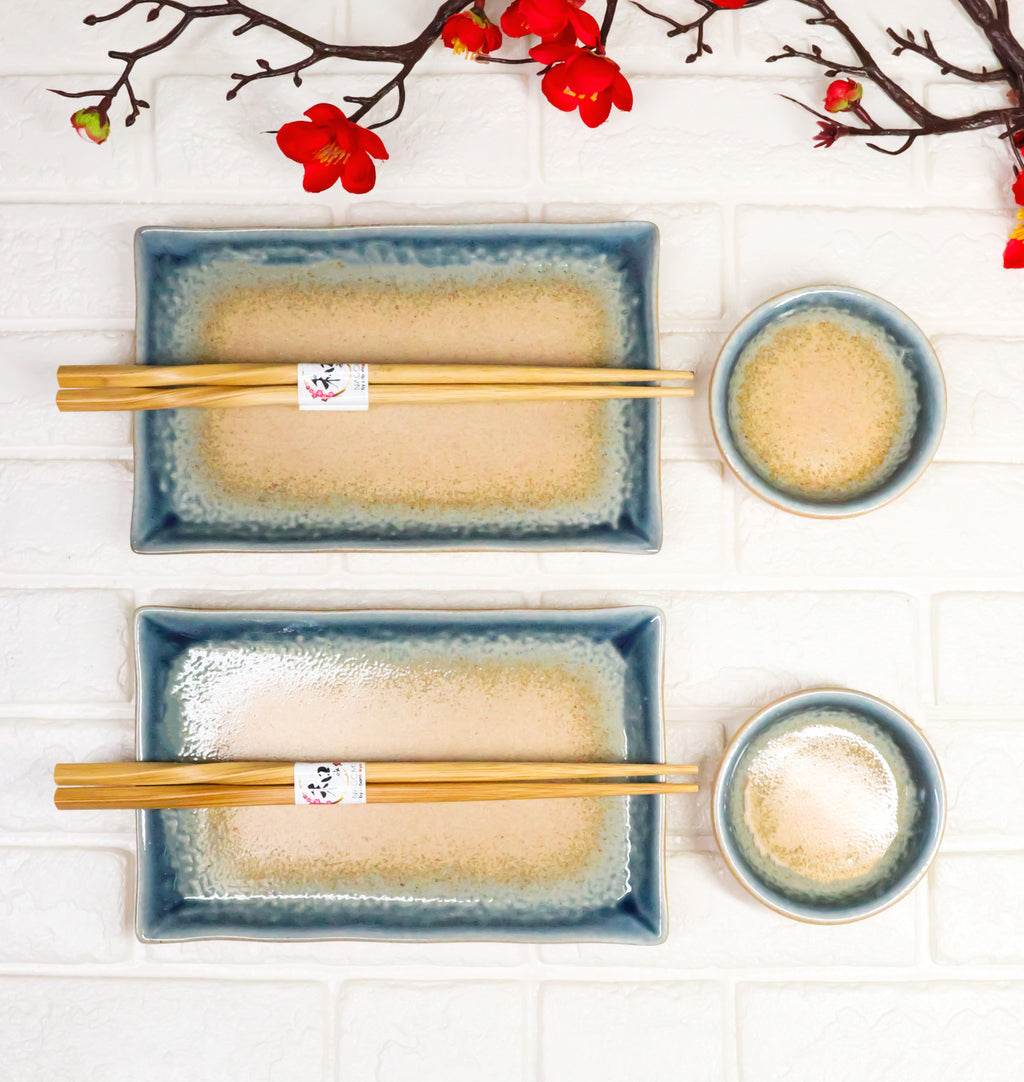 Ao Nagashi Porcelain Sushi Plates Sauce Dishes Chopsticks Dinnerware Set For 2