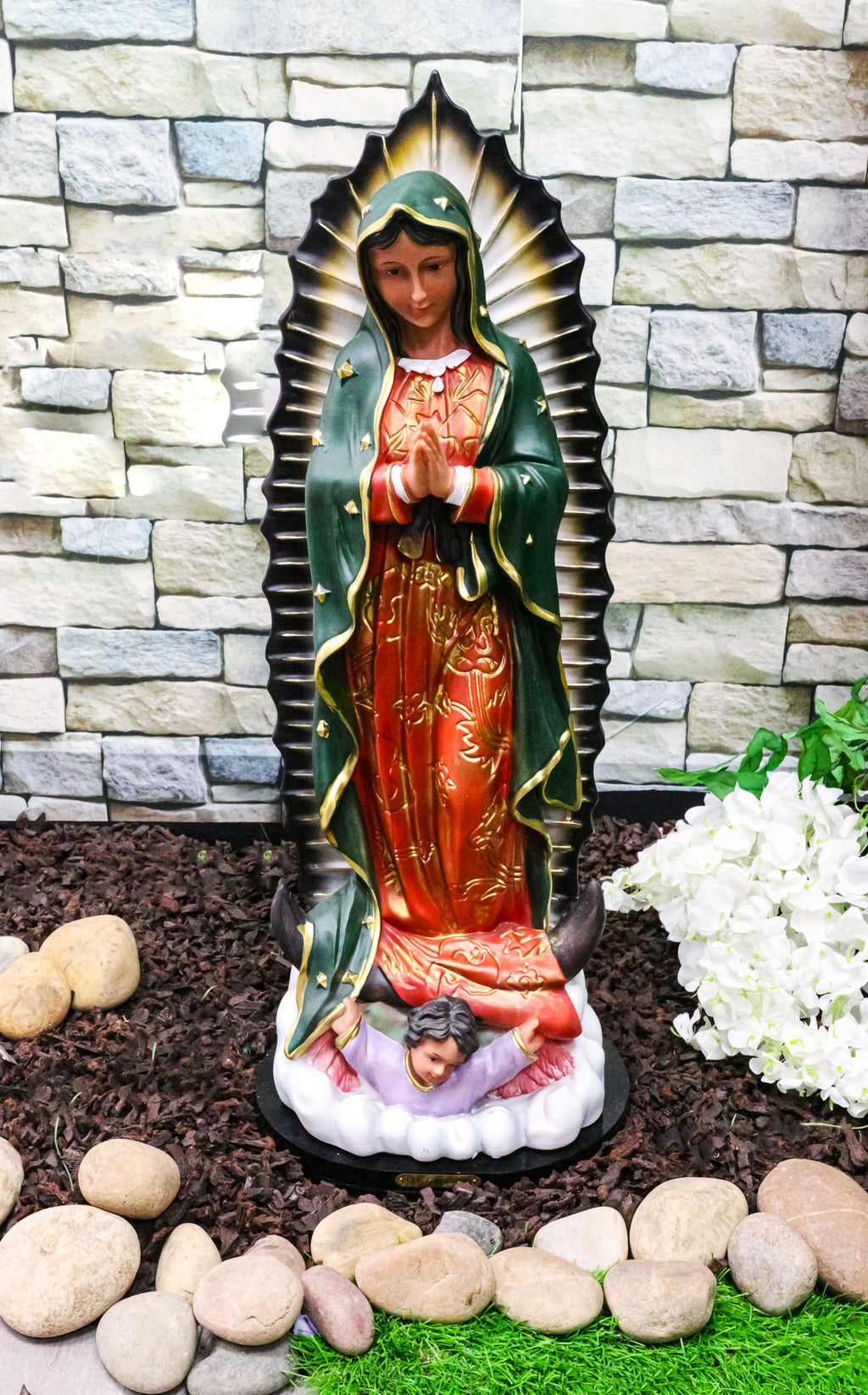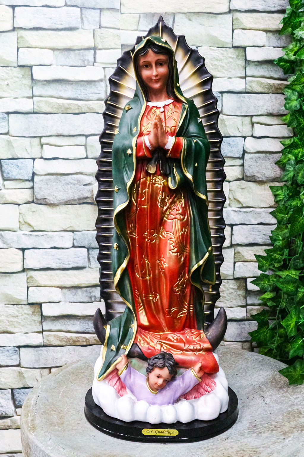 Blessed Virgin Our Lady of Guadalupe Statue with Brass Name Plate Base 24" Tall