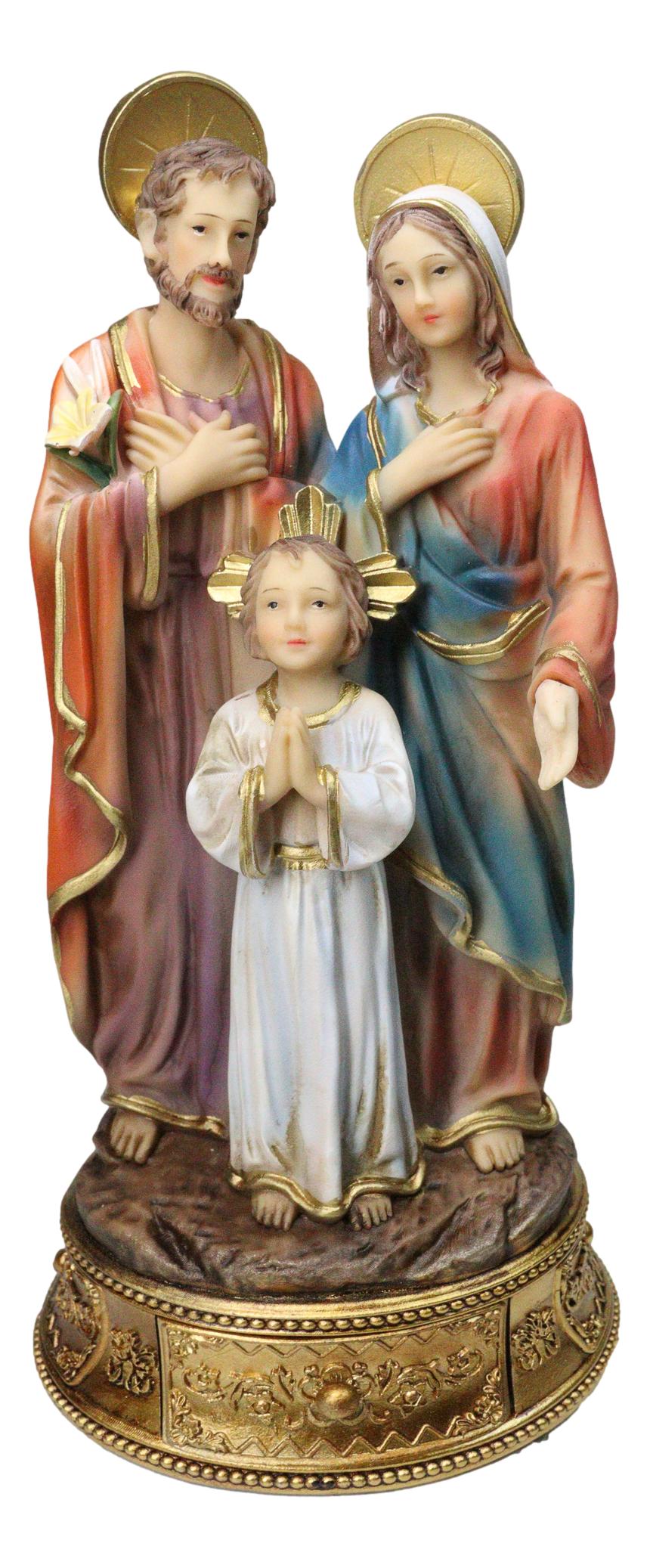 • This Amazing Holy Family With Rosary Box Sculpture measures 9.25" tall, 5" long and 3.75" deep approximately. It weighs about 1.25 pounds. • This Amazing Holy Family With Rosary Box Sculpture is made of designer composite resin, hand painted and polished individually. Color tone may vary slightly from pictures. • The Holy Family consists of the Child Jesus, the Virgin Mary, and Saint Joseph. Veneration of the Holy Family was formally begun in the 17th century by Saint François de Laval, the first bishop of New France. This figurine beautifully depicts the Holy Family and the story of Jesus Christ growing up as a child boy. Jesus did not come to the earth born in a royal family but he came to the world in a very ordinary family. God works in mysterious way, using ordinary people to do the extraordinary! • Celebrate love, faith, and unity with this Devotional Holy Family Figurine, beautifully portraying Mother Mary, Saint Joseph, and the Child Jesus together in a tender, reverent scene. Designed with a discreet rosary drawer box, this meaningful piece offers a special place to store your rosary or prayer keepsakes. Rich in symbolism and finely detailed, it's a heartfelt addition to any home altar or prayer space, and a thoughtful gift that honors family, devotion, and God's loving presence.