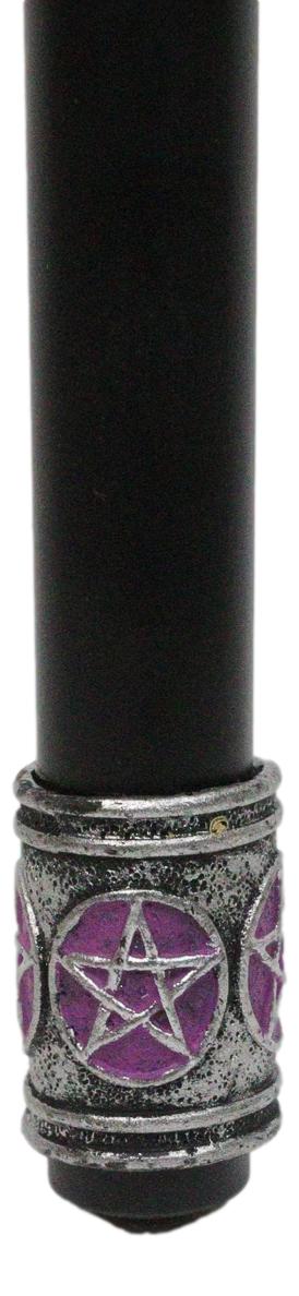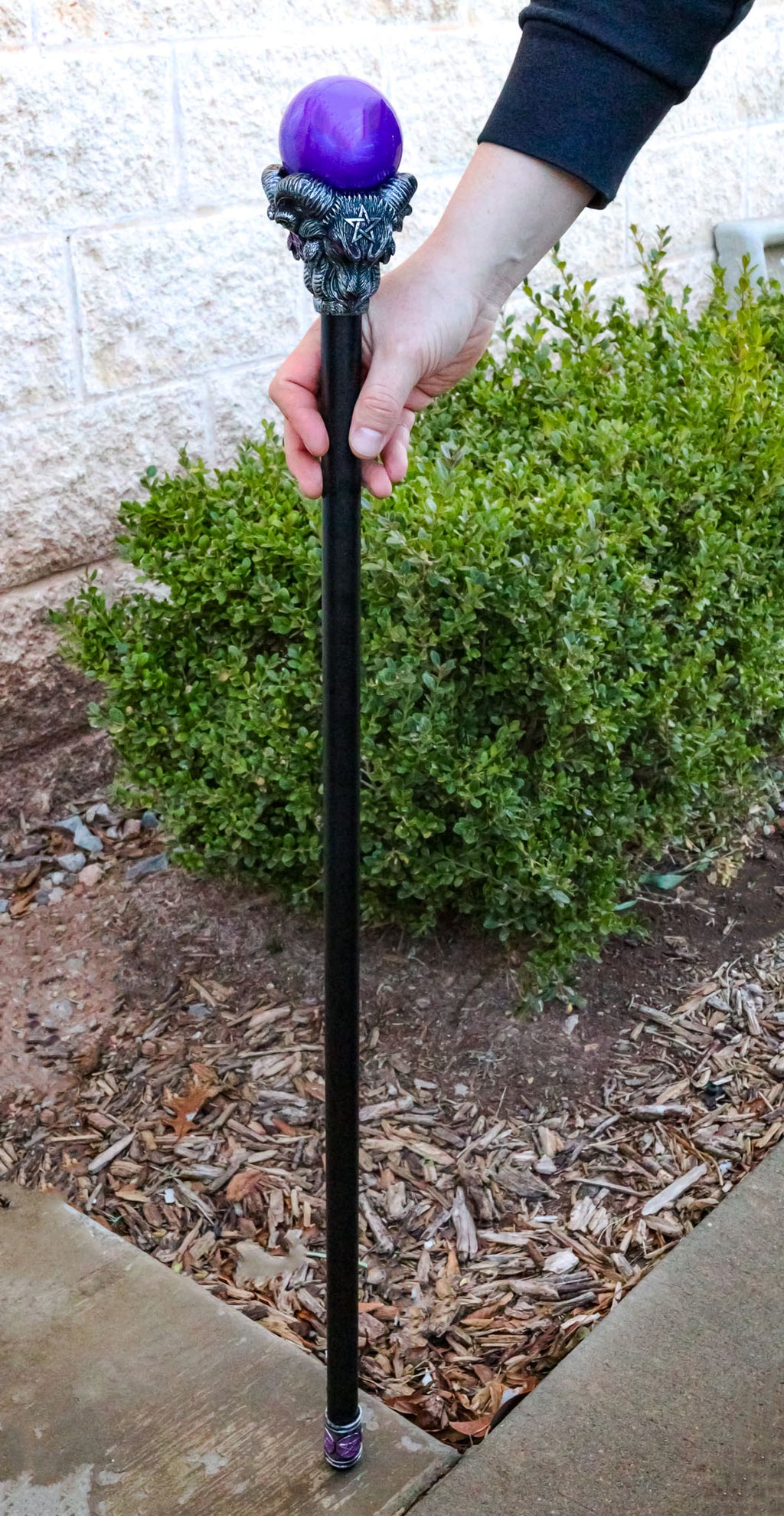 • This Baphomet Swagger Staff Cane measures 37" tall, 3.25" long and 3" wide approximately. The Staff weighs about 1.75 pounds. • This Baphomet Swagger Staff Cane is made of designer composite resin, hand painted and polished individually. • Make a bold statement with the Pentagram Baphomet Sabbatic Goat Swagger Stick Cane Staff. Featuring striking occult symbolism with the iconic Baphomet and pentagram design, this decorative cane blends dark mystique with commanding presence. Perfect as a display piece, costume accessory, or collector's item, it showcases intricate detailing and a dramatic aesthetic that stands out in any gothic, ritual, or alternative décor collection. • DISCLAIMER: Please note that this is not a medically approved walking cane. It is an accessorial staff for use as a costume prop or pretend play.