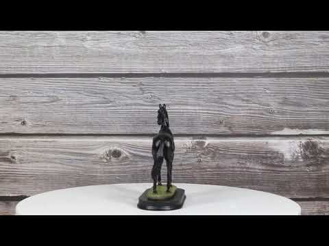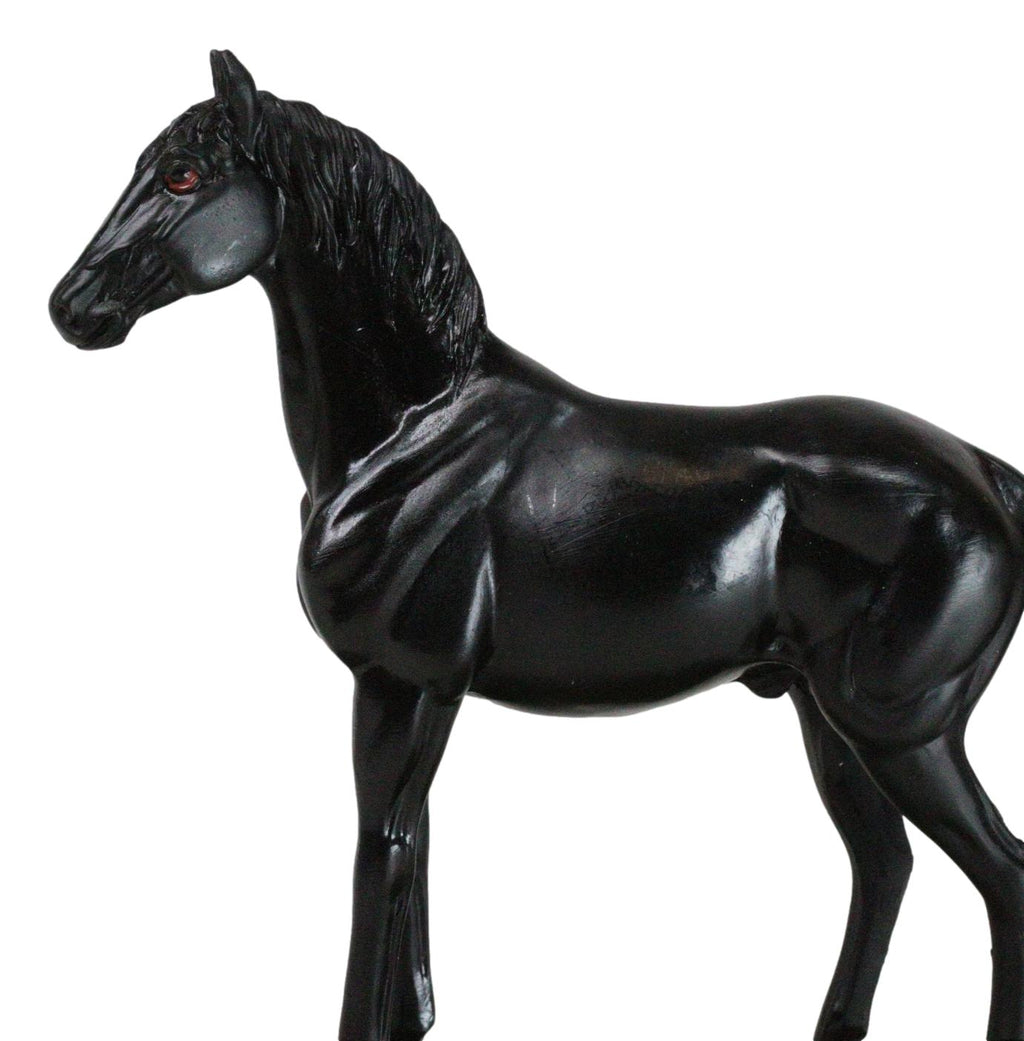 • This Beautiful Model Horse Figurine is 4.5" tall, 4.25" long and 1.75" deep approximately. • This Beautiful Model Horse Figurine is made of designer composite resin, hand painted and polished. Color Tone may vary • Showcase your admiration for majestic horses with the Equine Thoroughbred Pride Black Beauty Horse Steed Model Figurine. This beautifully crafted piece features a stunning black beauty horse in a dynamic pose, captured with exquisite detail and realism. Mounted on a sleek base stand, the figurine highlights the grace and strength of the thoroughbred, making it a perfect centerpiece for any equestrian enthusiast's collection. • Props in photos are not included with the item.