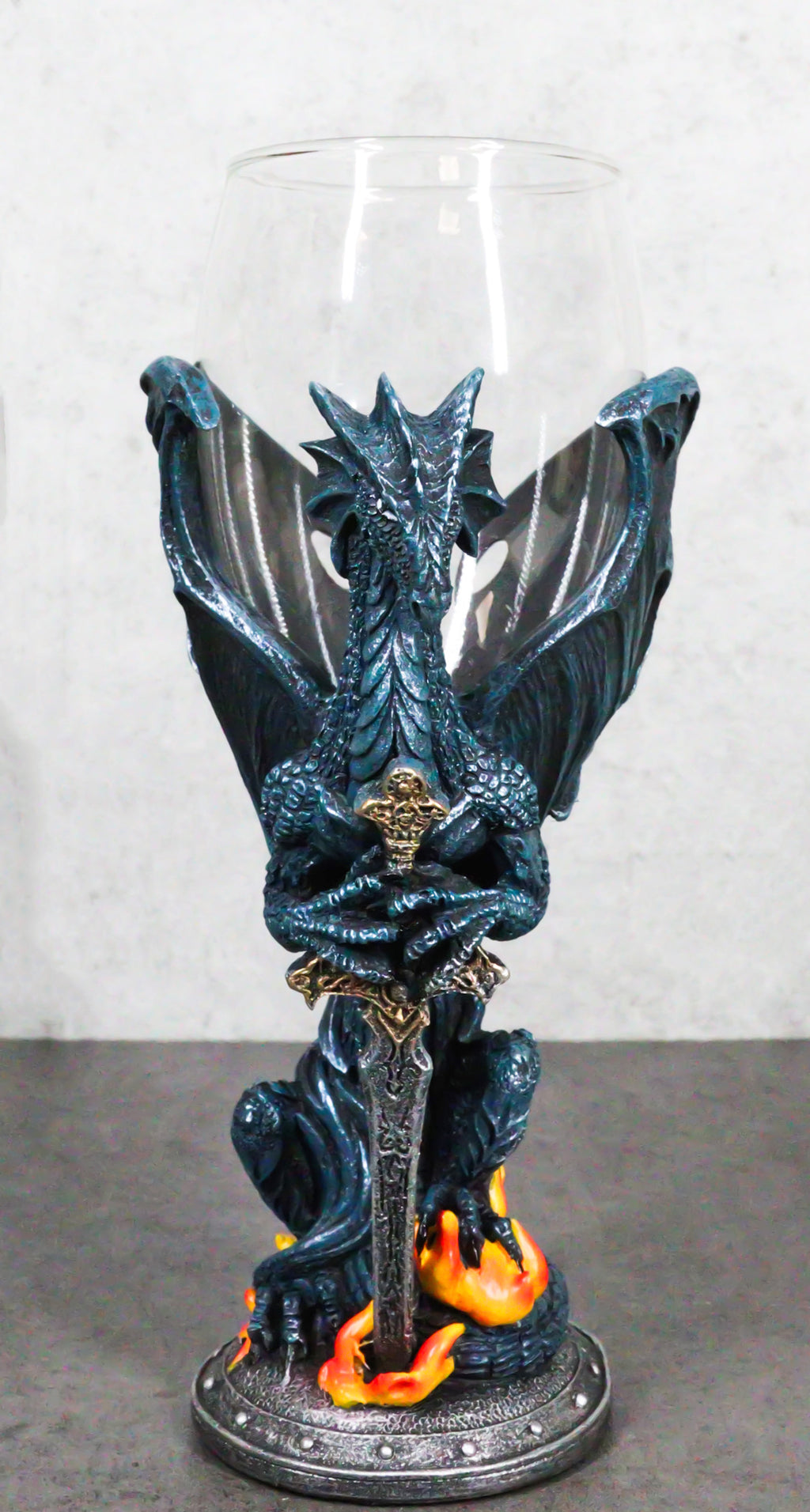 • Prepare for an unforgettable drinking experience! A dragon gripping a sword envelops the glass of this goblet, with its body, legs, and tail shaping the stem. This drinkware is absolutely captivating-a genuine conversation starter!