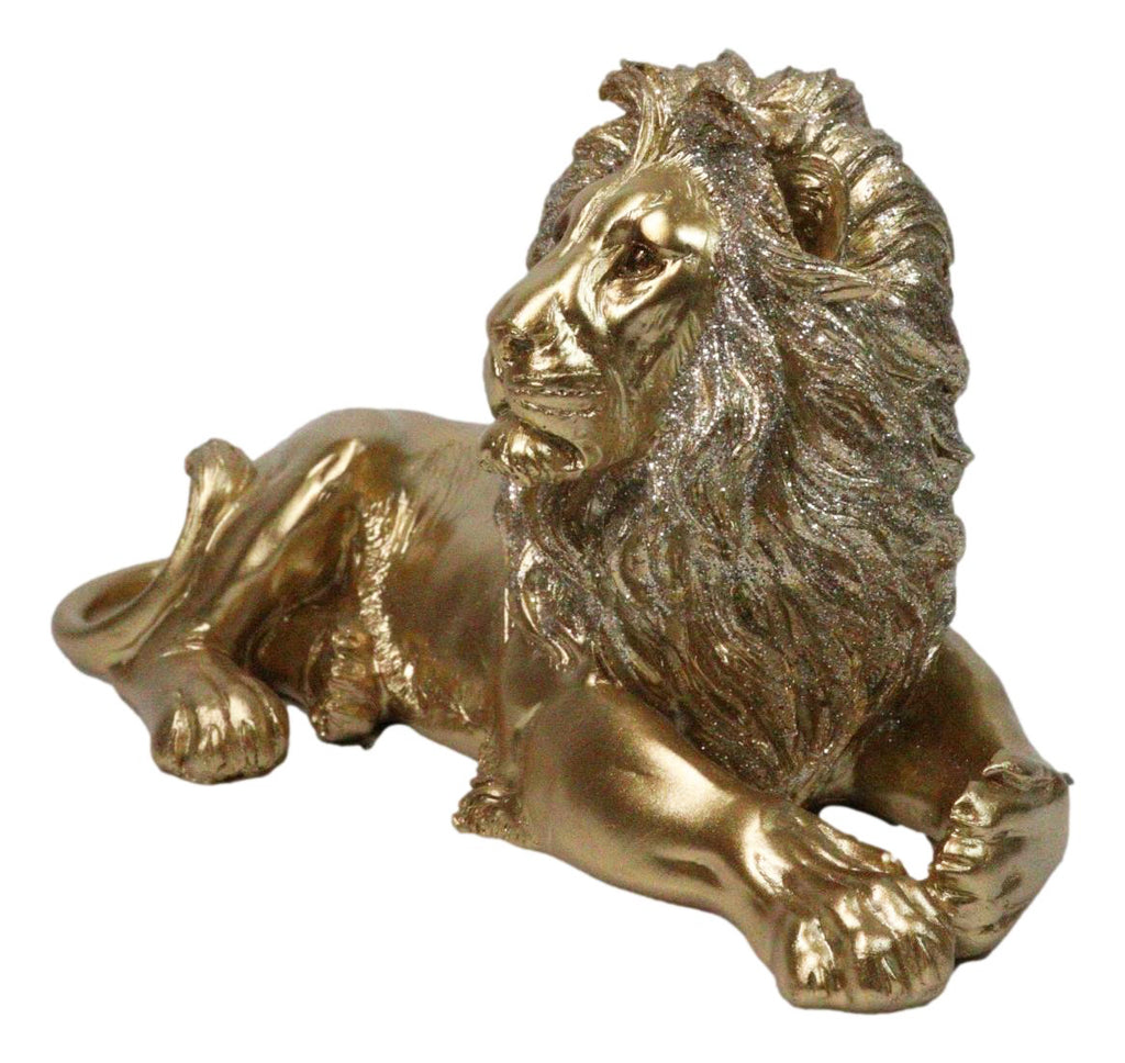 Faux Brass Gold African Safari In Regal Pose Lion King of The Jungle Figurine