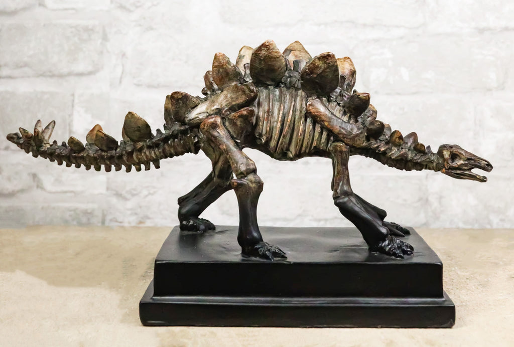 • This Stegosaurus Dinosaur Fossil Skeleton Sculpture measures 6" High, 12" Long and 4" Deep approximately. It weighs about 2 pounds. • This Stegosaurus Dinosaur Fossil Skeleton Sculpture is made of high quality polystone, individually handpainted and polished. Because each piece is partially hand crafted, color tone may vary from pictures. • Bring back the Jurassic era to your home or your loved ones! This Stegosaurus Fossil Bookends set encaptures the awe and might of these giant beasts that roamed the earth once. One of the most widely recognized dinosaur species of all time, the mighty stegosaurus is famous for their armor, protruding back spines and the spiked tail. • This is an Ebros Gift exclusive collection. Props and coke can used in photos are not included with the item. They are meant to provide size perspective of the item.