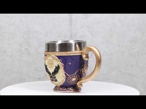 • This Tarot Tea Cup Mug is made of high quality polyresin, hand painted and polished individually. The mug comes with a removable stainless steel inner cup liner. The stainless steel metal insert is safe to be washed with dish soap. Refrain from washing the painted artwork mug body with hard soap in order to maintain its pretty colors. • This Tarot Tea Cup Mug measures 4.5" High, 6.25" Wide and 4.25" Deep approximately. Holds 8 Fluid Ounces. • Perhaps if you read the tea leaves, you'll glimpse what future might await you! This lovely little teacup features a tarot-themed motif, with a pair of hands and various occult symbols - eyes and suns, stars and swirls. The stainless steel insert holds your drink of choice, and an curving golden handle completes the look.