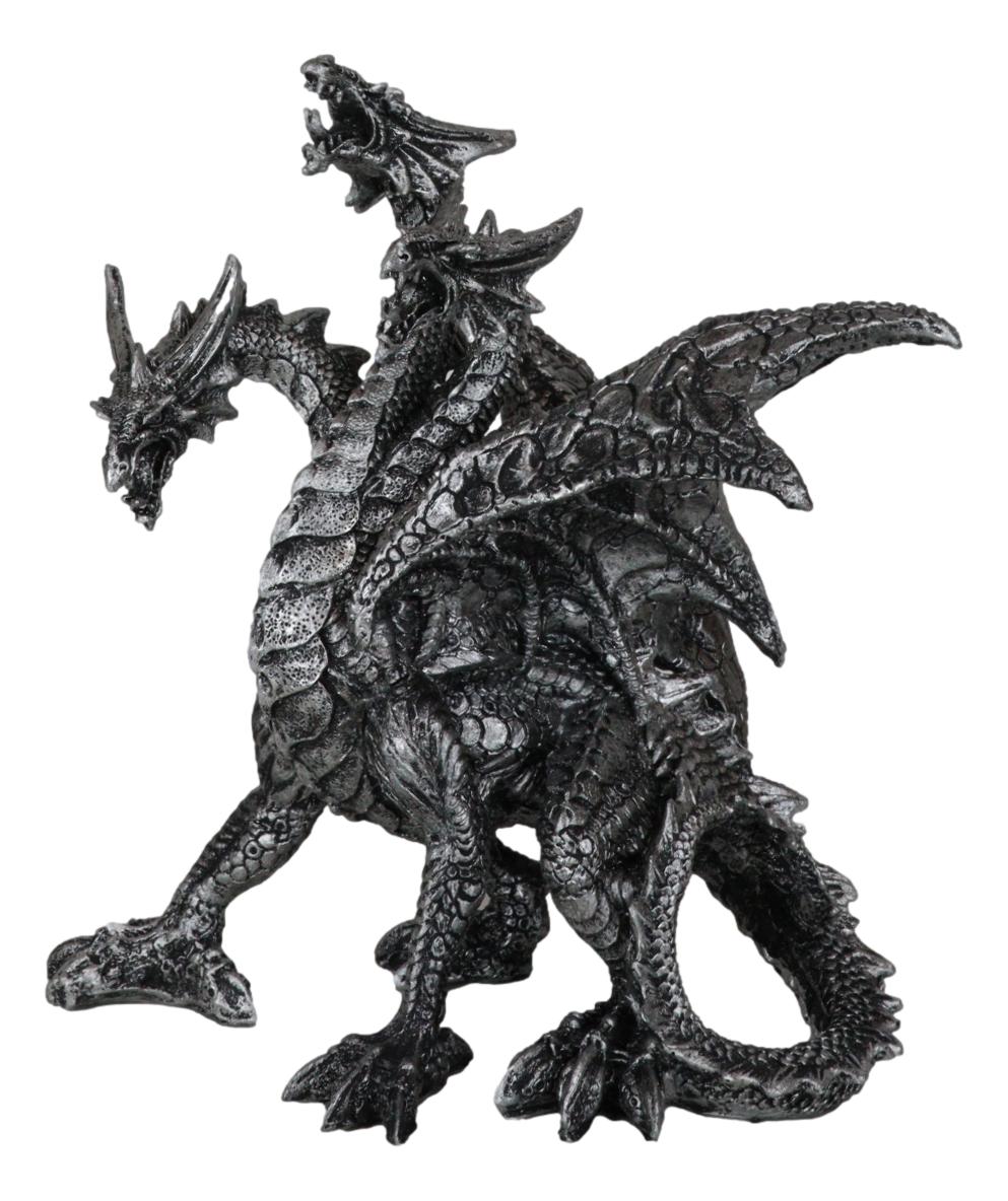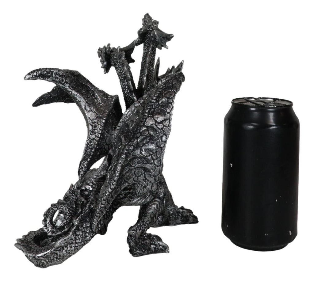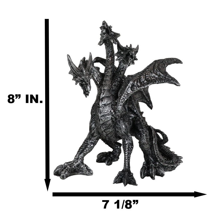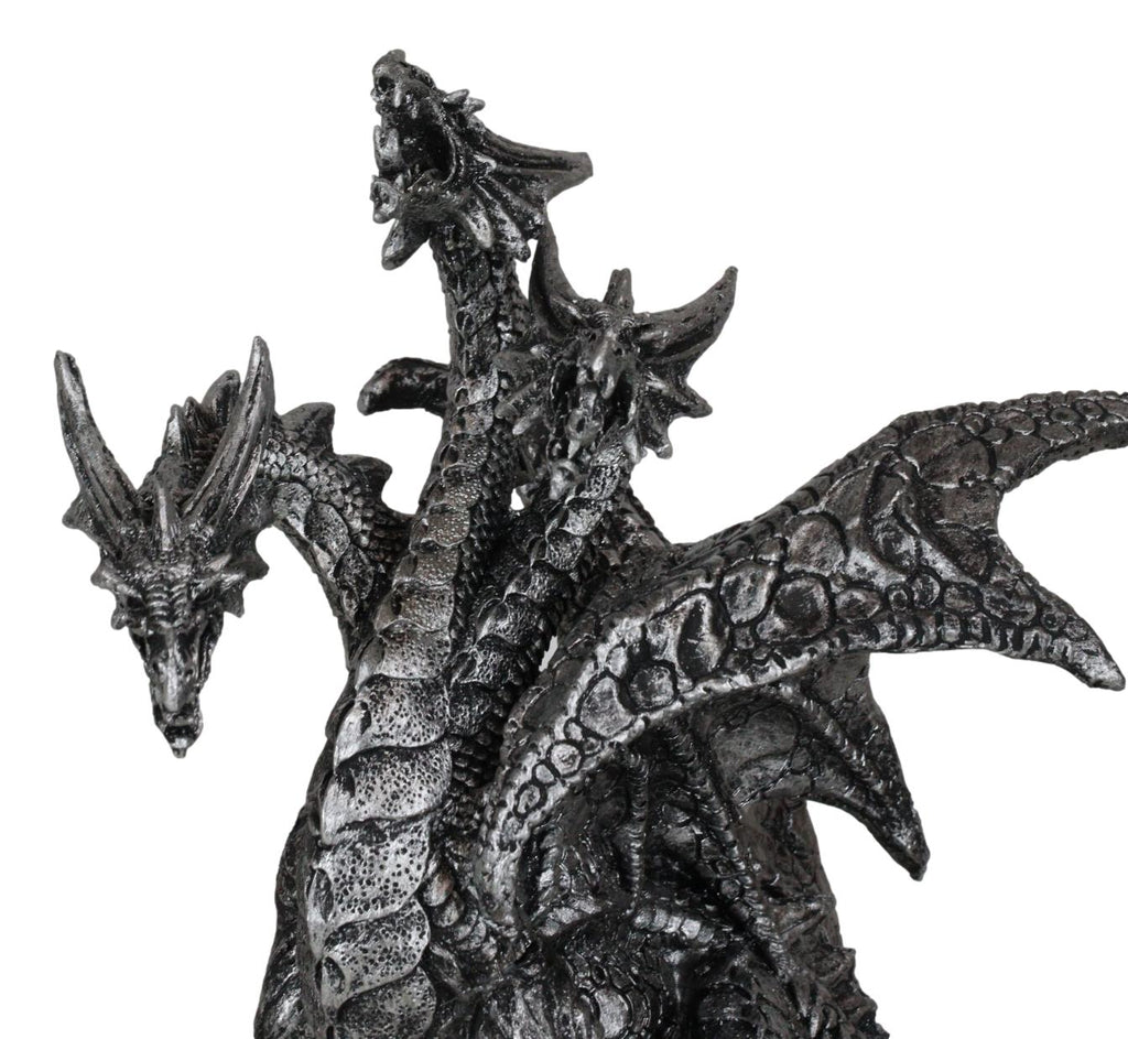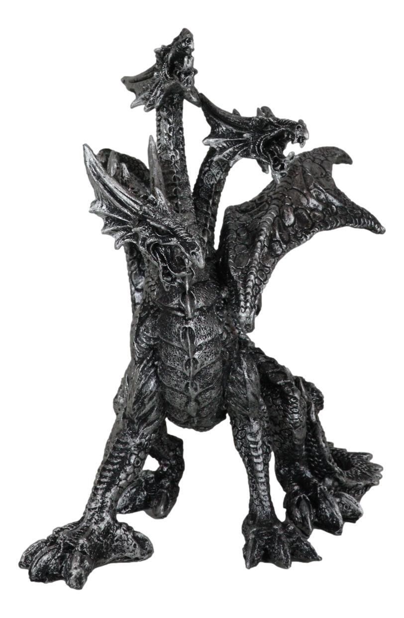 Gothic Silver Three Headed Dragon Hydra Roaring Statue 8" Tall Figurine Decor