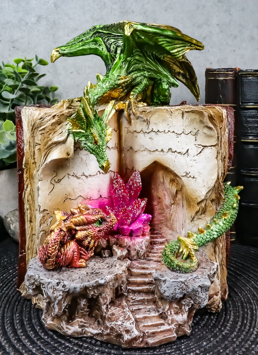 Ebros Green Dragon Wyrmling Perching On LED Crystals Book Of Spells Figurine