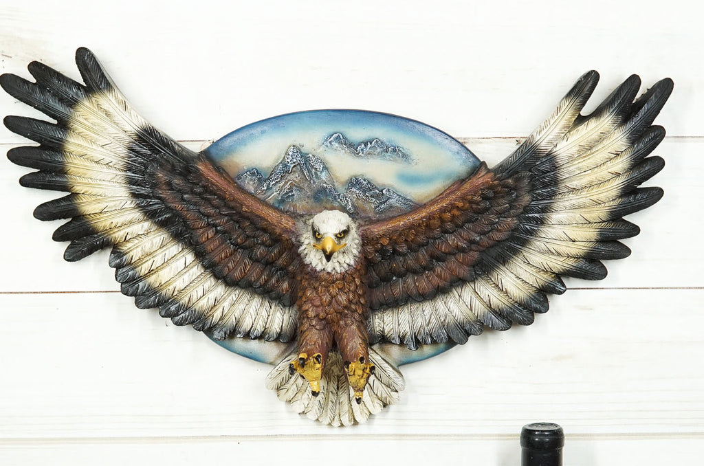 King Of The Skies Bald Eagle Open Wings With Mountain Scene Wall Decor Plaque