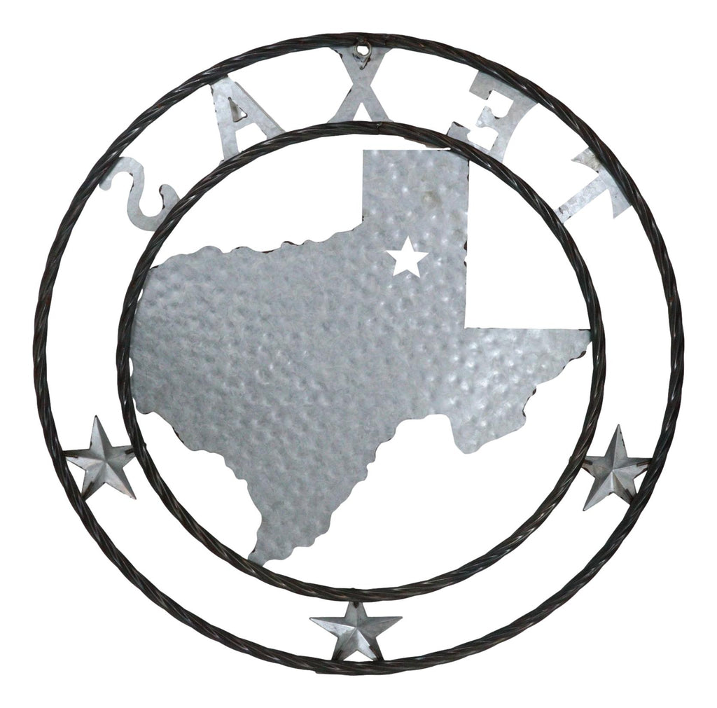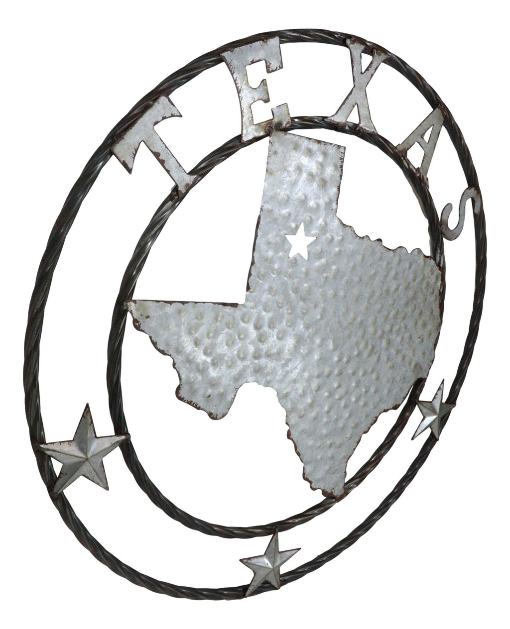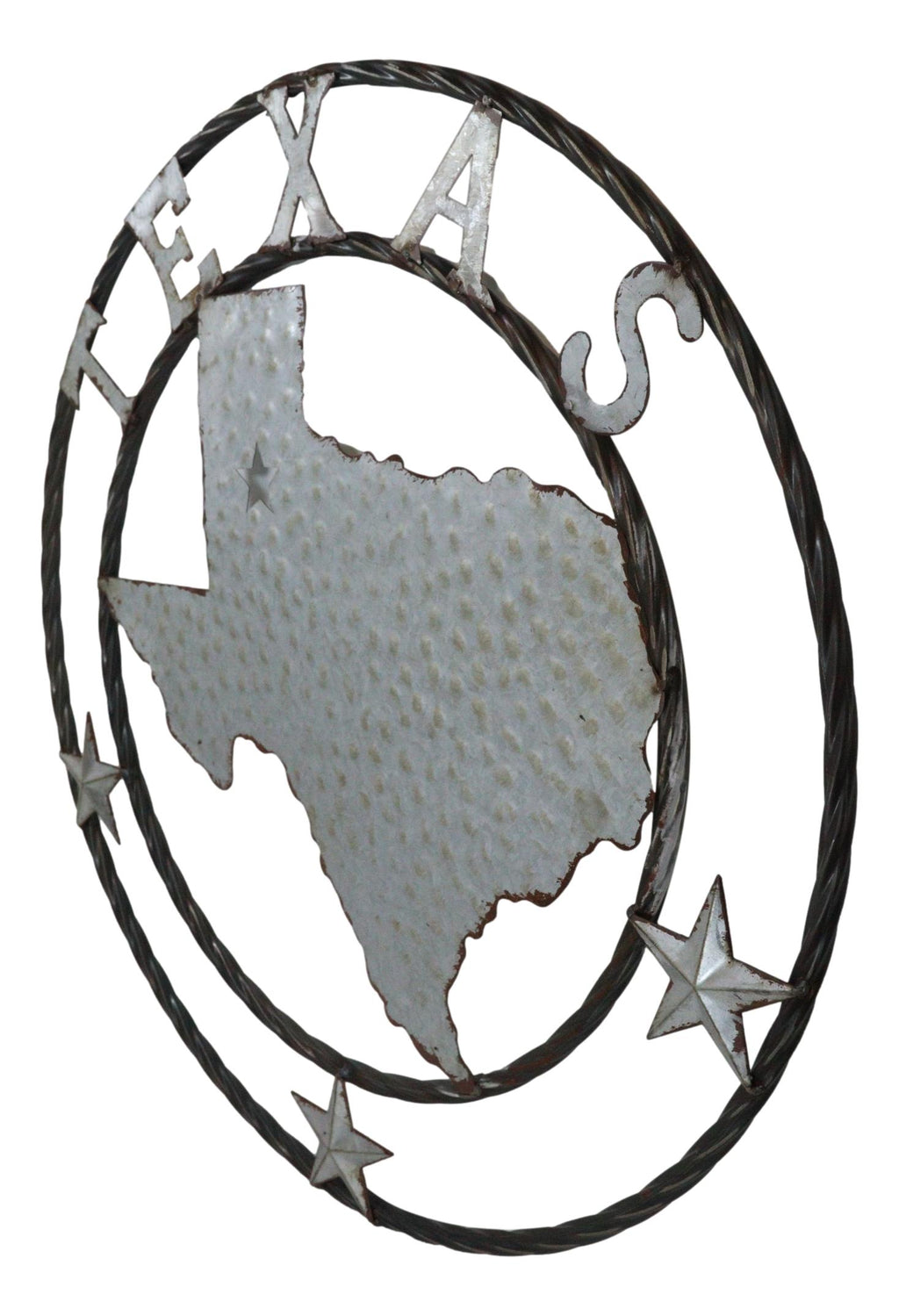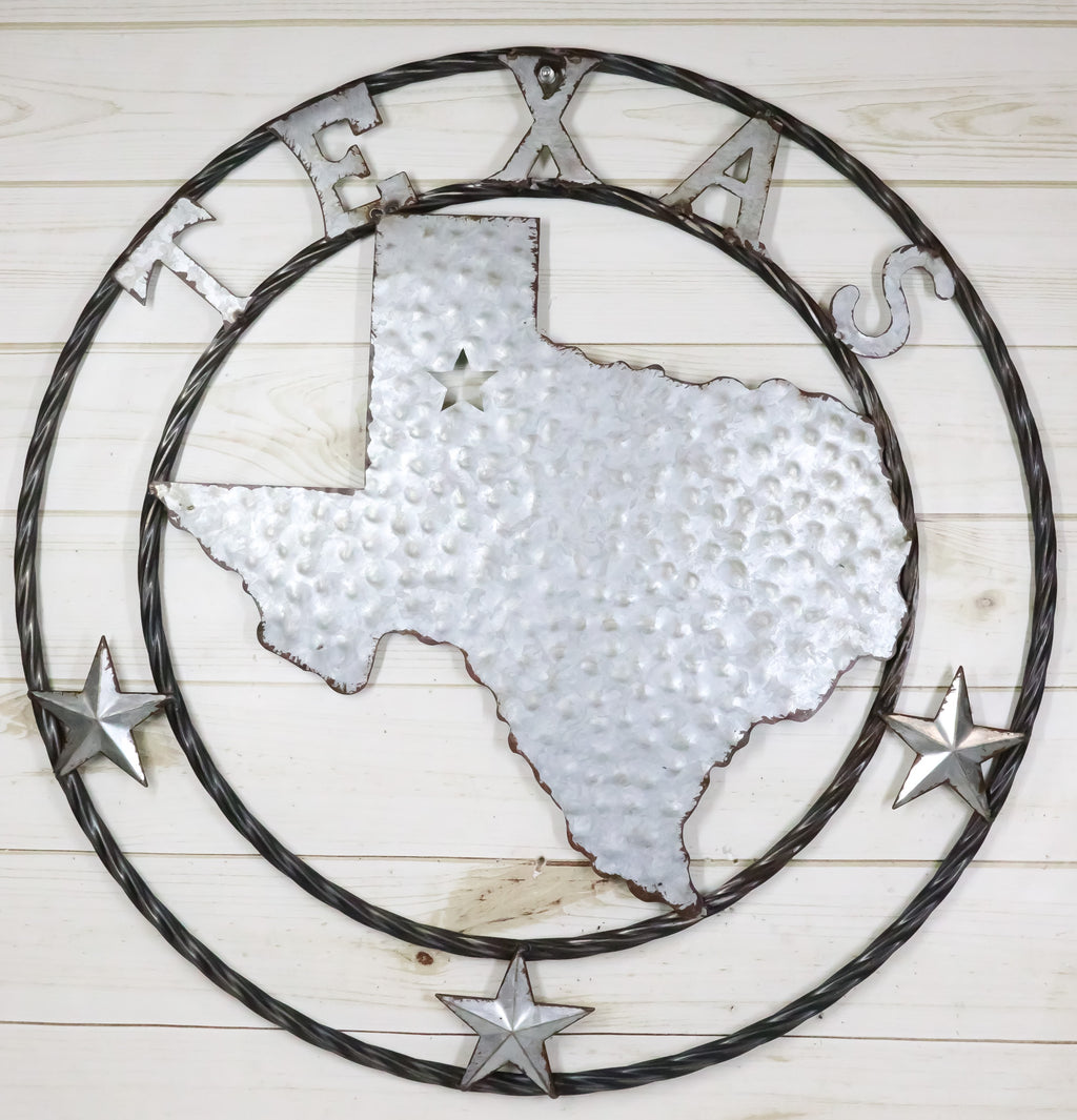 • This Oversized Western Lone Star State Texas Wall Circle is made of aluminum, individually hand crafted, painted and polished to the finish of glavanized metal silver. Color Tone may vary slightly from pictures.