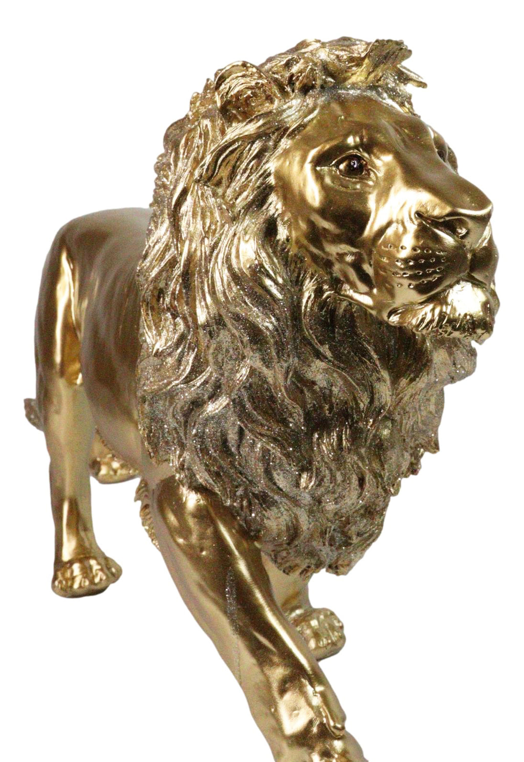 • This Large Prowling Lion Figurine measures 11.5" tall, 22.5" long and 5.5" deep approximately. It weighs about 4.25 pounds. • This Large Prowling Lion Figurine is made of polyresin, hand painted and polished individually. • Command attention with the Faux Brass Gold Finish African Safari Prowling Lion Figurine. This majestic "King of the Jungle" sculpture captures the power and grace of a lion in regal repose, finished in a radiant faux brass gold tone that exudes strength and elegance. Perfect for safari-themed décor, office displays, or as a bold centerpiece, it symbolizes courage, leadership, and pride-making it an ideal gift for wildlife enthusiasts and collectors of regal art. • Props and soda can in photos are not included with the item.