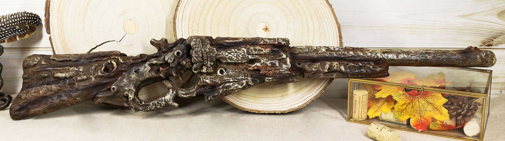 • You can now add a rustic Old world touch to your room in style with this western hunting rifle wall decor. Designed just like a rifle but with the finish of a faux distressed wood look, it will warn intruders that in your house, you don't mess around!