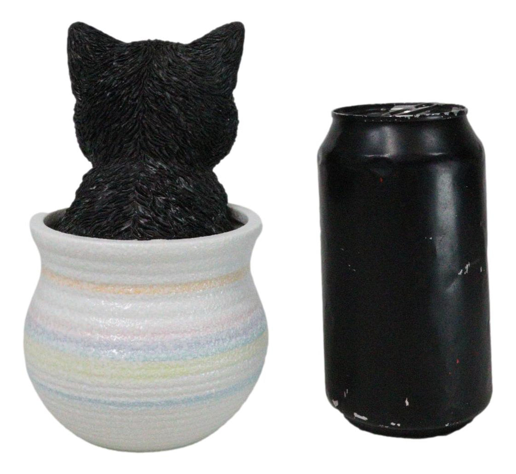 • This Tuxedo Cat In Pot Figurine measures 6.25" tall, 4" long and 4" deep approximately. It weighs about 1.25 pounds. • This Tuxedo Cat In Pot Figurine is made of polyresin, hand painted and polished. Our brand of home and garden decors is specially dedicated to bring a whimsical, unique and elegant look to your space!!! It is designed to stand on a flat surface. • Brighten your space with the Black and White Tuxedo Cat in Artistic Pot Figurine. This charming sculpture features a playful tuxedo cat sitting comfortably in a vibrant, pastel rainbow pot, creating a delightful blend of whimsy and color. Handcrafted with intricate details, the cat's expressive features and the soft hues of the pot bring a touch of joy and artistic flair to any room. Perfect for cat lovers and those seeking a unique, cheerful accent for their home décor. • Coke can and props placed next to the figurine are not included with the listing. They are meant to provide size perspective of the item