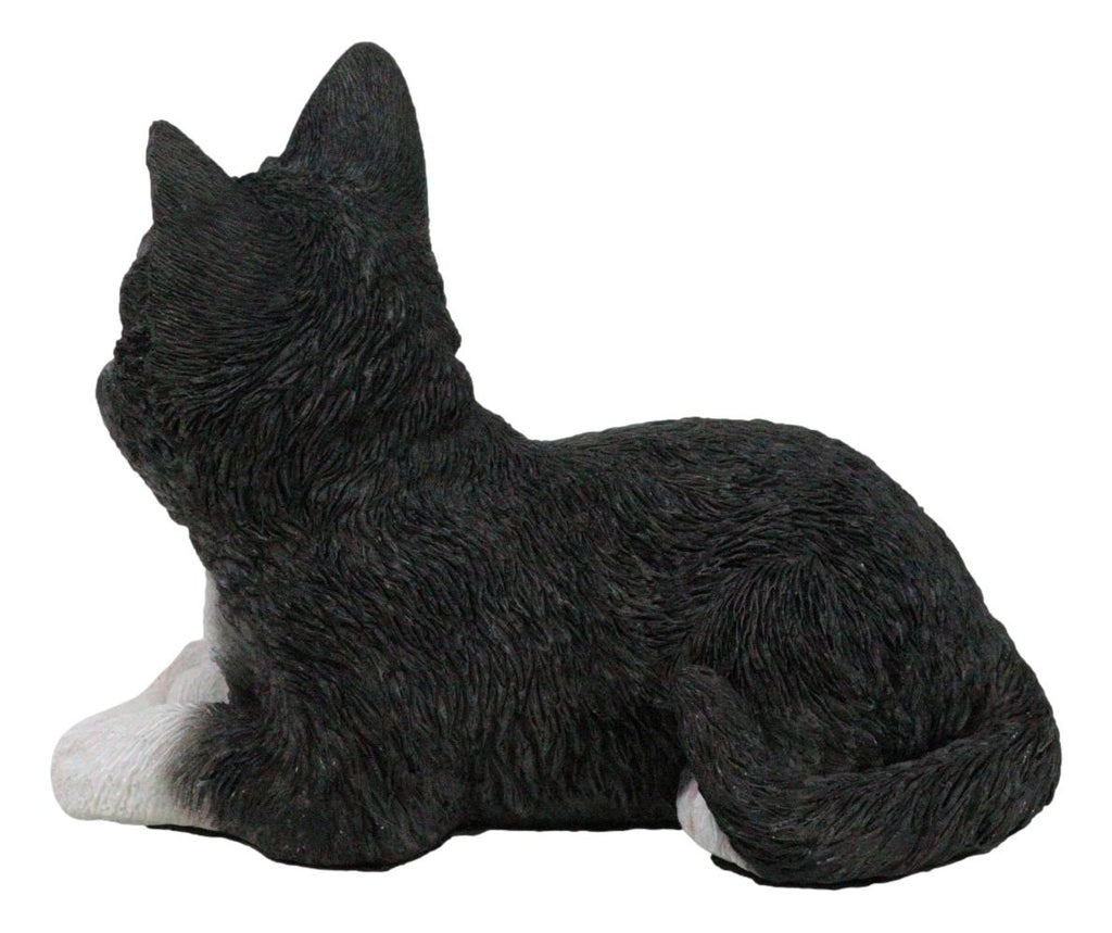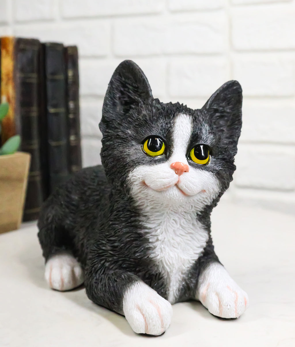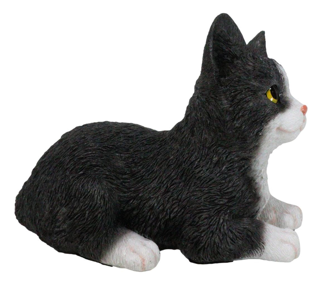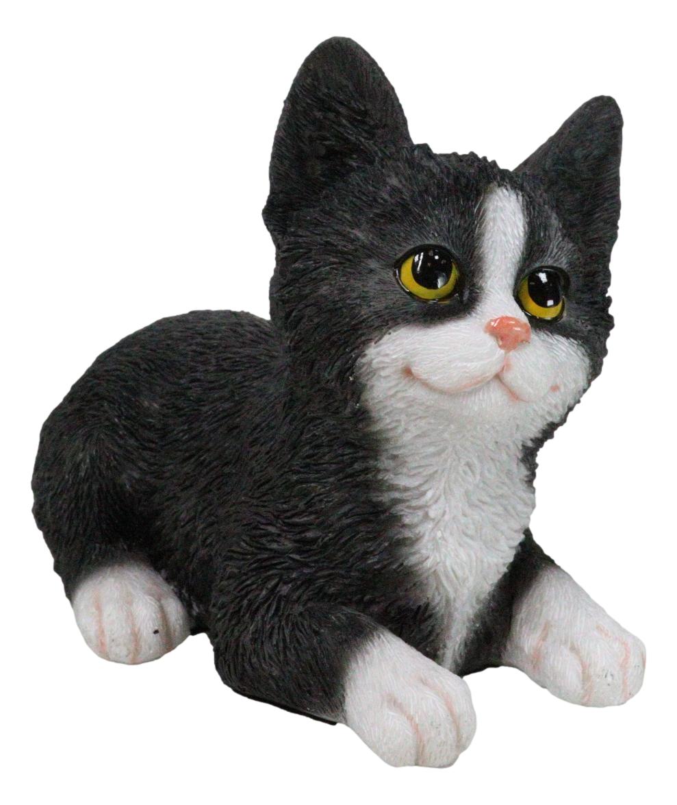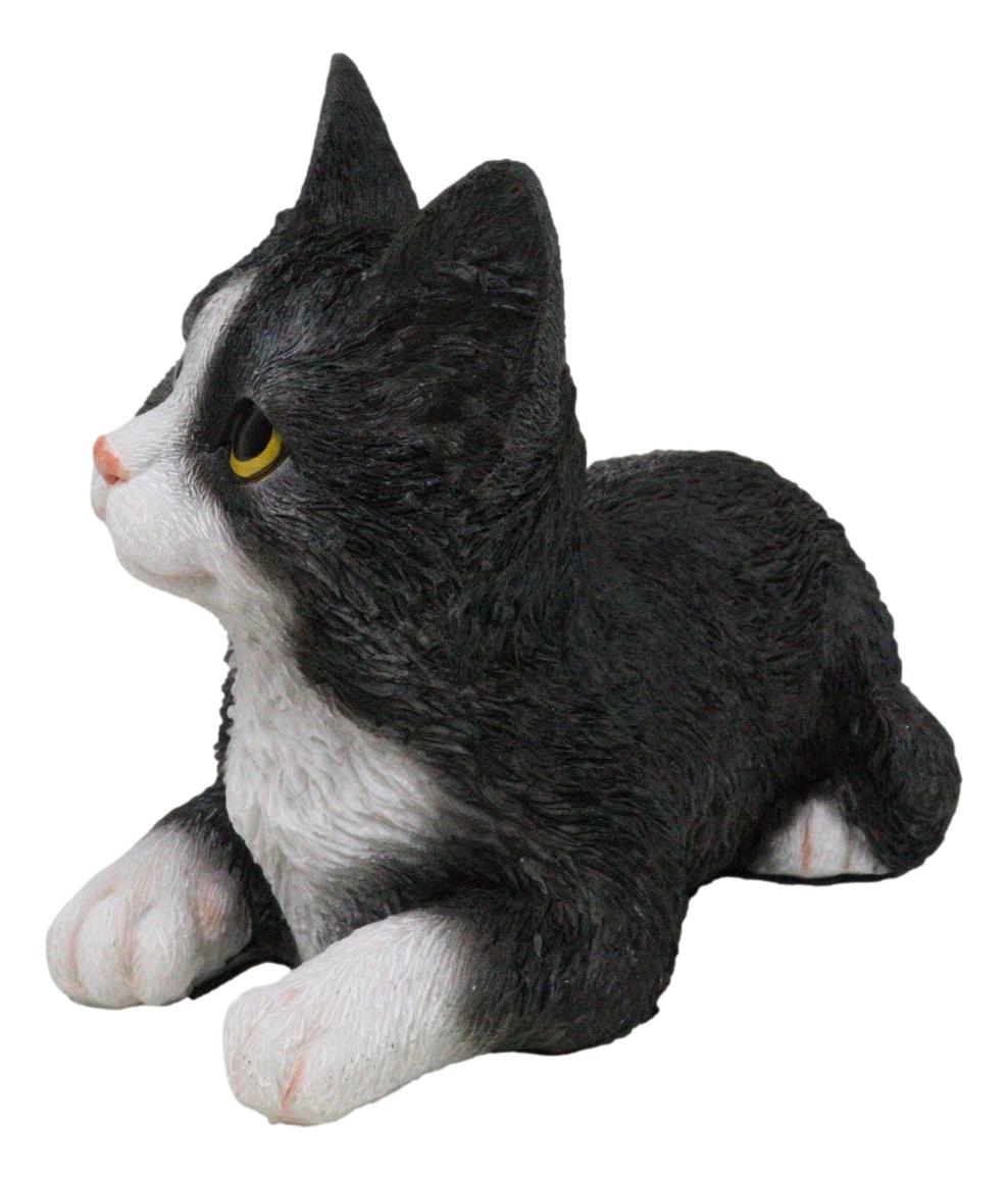 • This Tuxedo Cat Figurine measures 5.25" tall, 7" long and 4" deep approximately. It weighs about 1.25 pounds. • This Tuxedo Cat Figurine is made of polyresin, hand painted and polished individually. Our brand of home and garden decors is specially dedicated to bring a whimsical, unique and elegant look to your space!!! It is designed to stand on a flat surface. • A realistic lifelike sleeping tuxedo kitten is featured in this adorable figurine. The Black and White Tuxedo cat is textured to give a furred look and the painting is sublime with great realism.