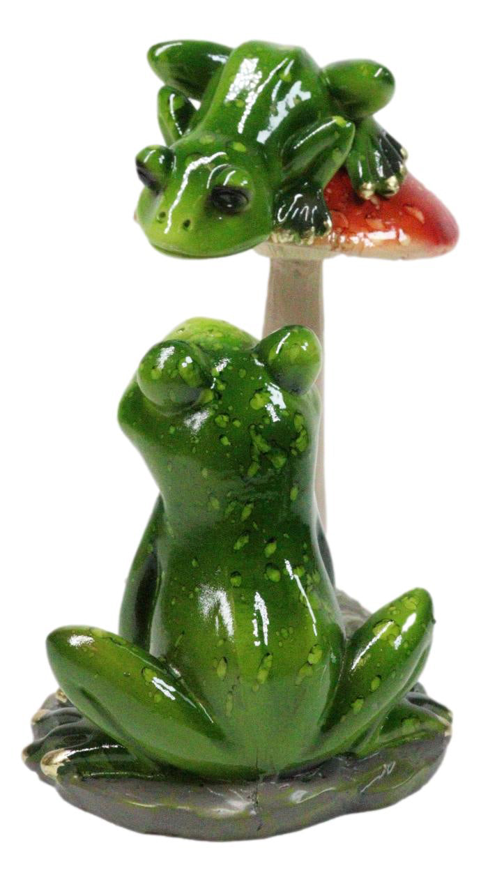 • This Green Frogs Couple figurine is 4.5" tall, 5" wide and 3" deep approximately. It weighs about 9 ounces. • This Green Frogs Couple figurine is made of designer composite resin, hand painted and polished individually. • Add a touch of romance and whimsy to your décor with this Forest Love Affair Green Pond Frogs Figurine. This charming piece captures a frog couple in courtship beside whimsical toadstool mushrooms, celebrating love and playful connection in a magical rainforest setting. Perfect for shelves, desks, or garden-themed displays, it's a delightful collectible for frog enthusiasts and lovers of enchanting, heartwarming décor. • Props in photos are not included with the item.