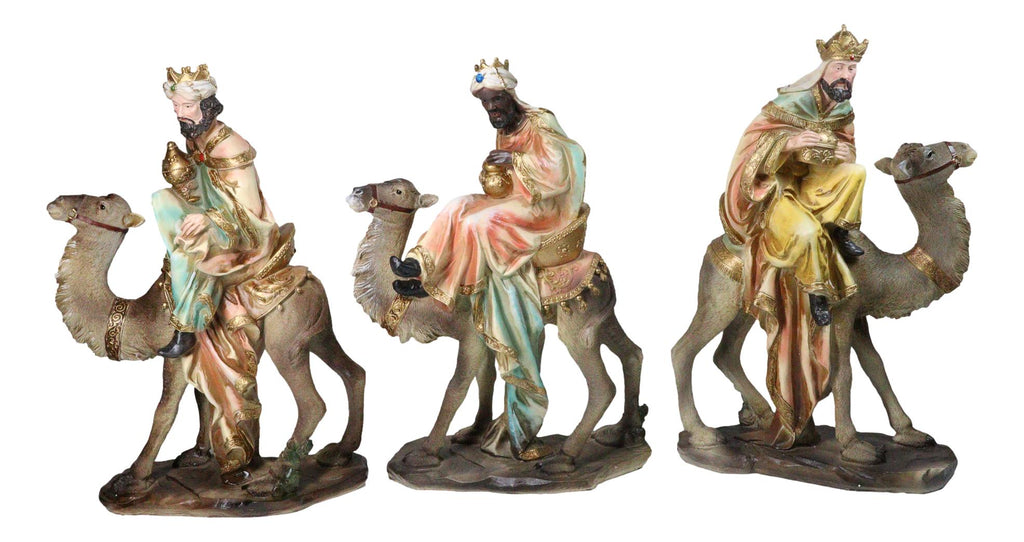 Nativity Three Wise Men Balthasar Caspar Melchior On Camels Figurine Set 14"H