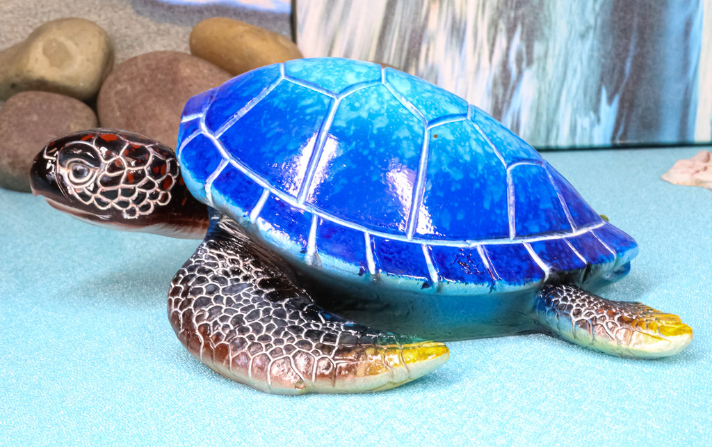 Nautical Ocean Blue Giant Sea Turtle Swimming Bobblehead Figurine Tortoise