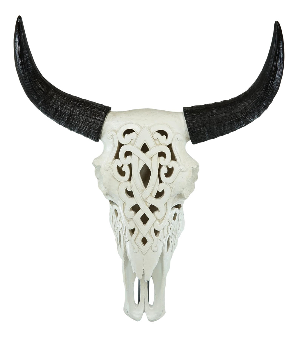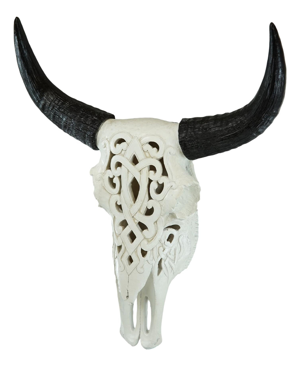 • This Filigree Bison Bull Skull Head Wall Decor is made of designer composite resin, hand painted and polished. Color Tone may vary slightly from pictures.