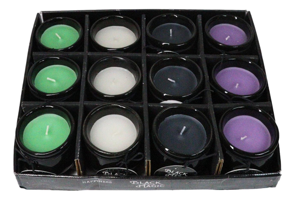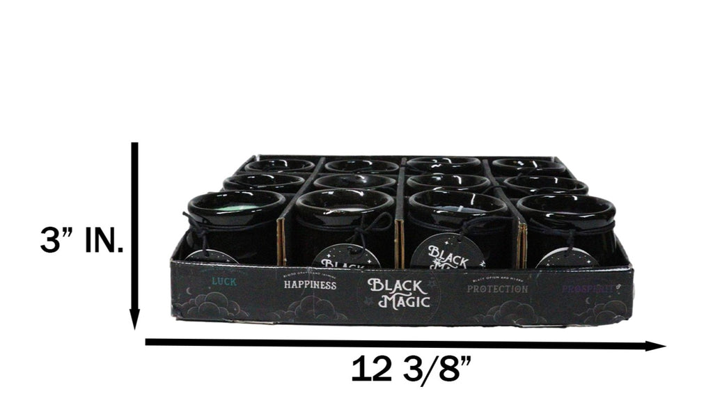 • This Cauldron Candleholders are made of ceramic, hand painted and polished individually. • This Cauldron Candleholders each measures 3" High, 2.75" Wide and 2.75" Deep approximately. The set weighs about 10 pounds. • Get ready for a bewitching Halloween with this set of 12 cauldron candles. Includes 3 candles of each spellbinding fragrance to attract luck and prosperity. Scents include Juniper and Eucalyptus (Luck), Blood Orange and Jasmine (Happiness), Black Opium and Myrrh (Protection) and Lavender and Rosemary (Prosperity). Sold in sets of 12 in a cardboard tray. • Candle Burn time: 16 - 18 hours.