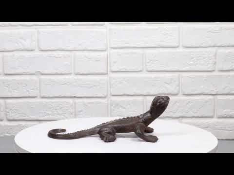• This Gecko Lizard Figurine measures 2.75" High, 7.75" Wide and 3.75" Deep approximately. It weighs about 14 ounces. • This Gecko Lizard Figurine is made of cast iron, hand painted and polished. Color Tone may vary slightly from pictures. • Unleash the wild charm of nature with our captivating Cast Iron Gecko Lizard Metal Figurine. Crafted with exquisite attention to detail, this figurine captures the essence of the elusive gecko lizard in stunning realism. Made from durable cast iron, this metal figurine boasts both strength and durability, ensuring it withstands the test of time as a cherished piece of decor. • Props in photos are not included with the sculpture. This listing is for 2 gecko lizards.