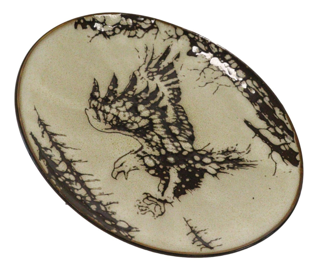 • These Rustic Animal Abstract Earthenware are made of ceramic, designed and manufactured with superior quality in mind. Our traditionally crafted pottery are made of the highest quality ceramic available and fired at a high temperature to maximize the strength of the ceramic, making them superior to other ceramics in the market. Our double walled pottery are more resistant to cracks, stains, and scratches. Our ceramic is food safe and contain no lead or cadmium. • These Rustic Animal Abstract Earthenware measures 8.25" diameter and 1" High. It weighs about 1 pound. • Add a touch of rustic and nature feel to your dining setup and decor with these ceramic earthenware. A silhouette of a swooping bald eagle is engraved under the glaze of the earthenware, creating a beautiful abstract animal art form. These plates are perfect for appetizers, desserts, salads, small buffet serving style and more! • Microwave and Dishwasher Safe. • This listing comes as a pack of 2. Props in photos are not included with the dinnerware.