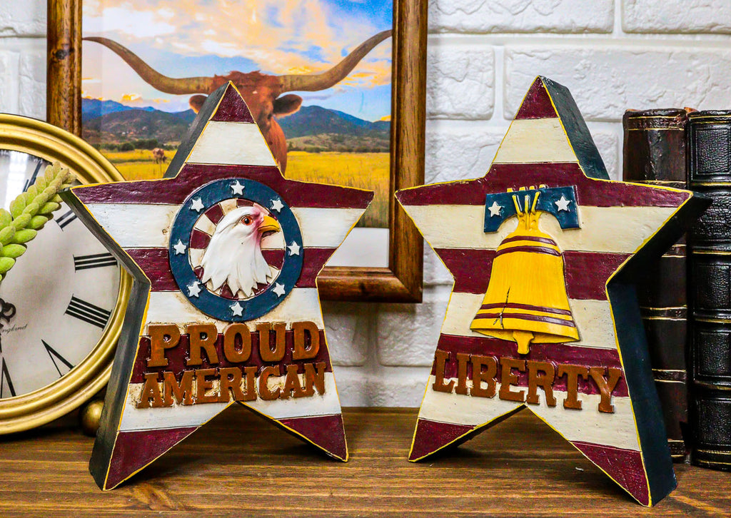 Ebros Pack of 2 USA Bald Eagle And Liberty Bell Proud American Stars Desktop Plaque