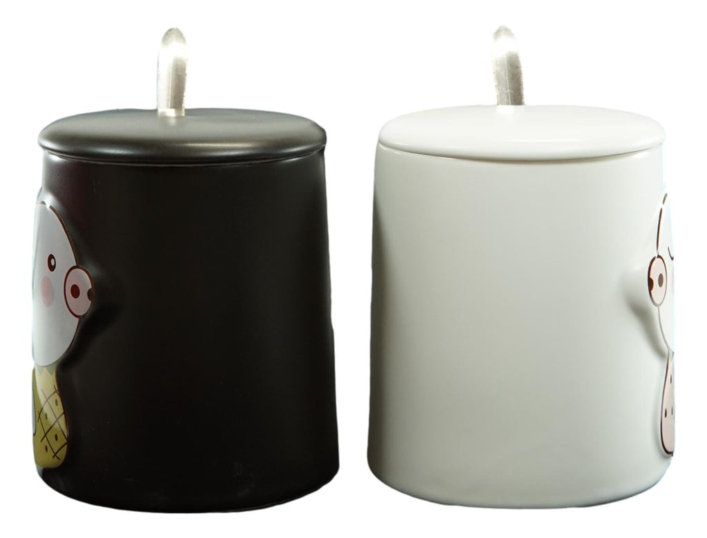 Ebros Pack Of 2 Valentines Love Pigs Black & White Coffee Mugs With Lid & Spoon