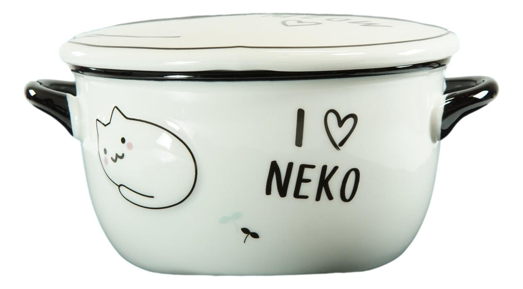 Pack Of 2 White Maneki Neko Lucky Cat Porcelain Kids Food Bowls W/ Lid 25Oz