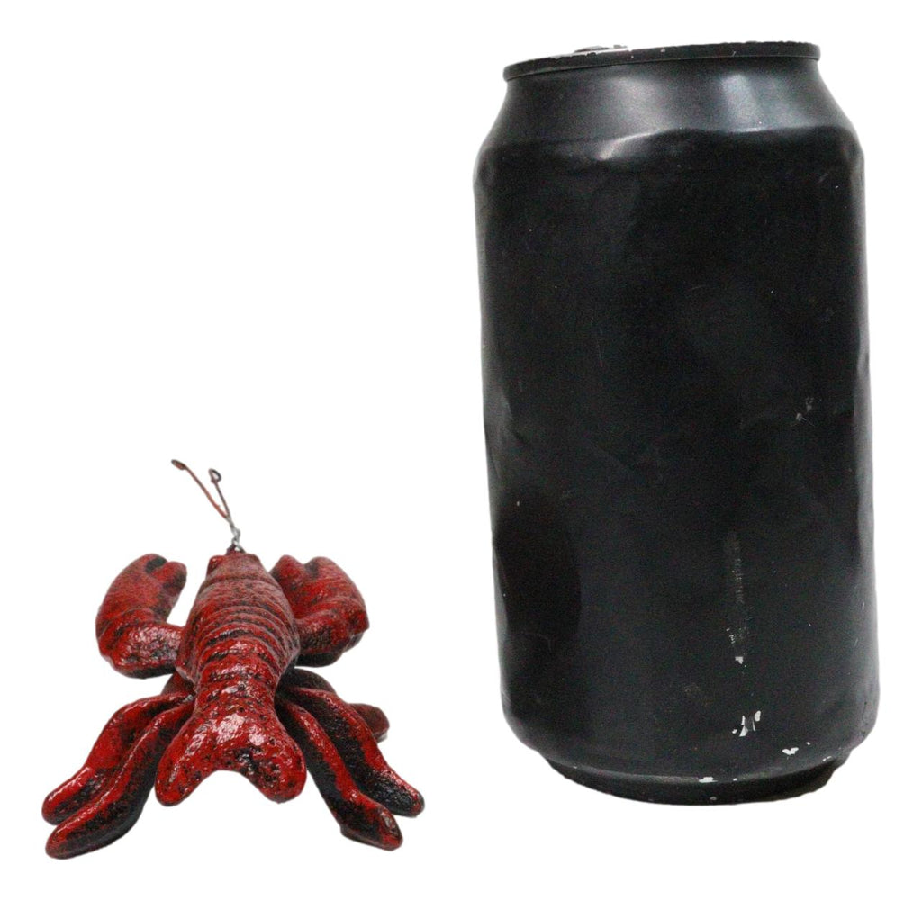 • This Mini Lobster Crawfish Decorative Sculpture measures 4.5"Long 1.75"High and 2.75"Deep each approximately. It weighs about 7 ounces each. • This Mini Lobster Crawfish Decorative Sculpture is made of designer cast iron, hand painted and polished individually. Color Tone may vary slightly from pictures. • Add a dash of coastal charm to your décor with the Cast Iron Mini Baby Lobster Decorative Figurine. Crafted from sturdy cast iron, this adorable lobster features a rustic finish that captures the essence of seaside and bayou living. Perfect for kitchen counters, seafood restaurants, or nautical-themed spaces, it's a fun accent piece that celebrates Cajun and coastal culture with a touch of whimsy and charm. • Soda can placed next to the statue is not included with the listing. It is meant to provide size perspective of the item. • This listing is for 4 lobster accent figurines.