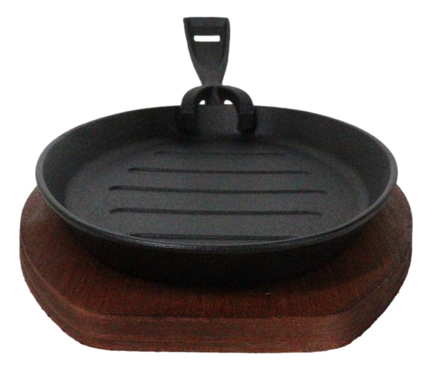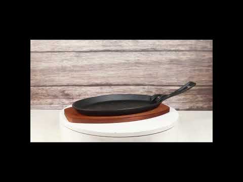 Personal Size Cast Iron Oval Fajita Steak Pan Skillet With Wood Trivet Base