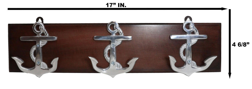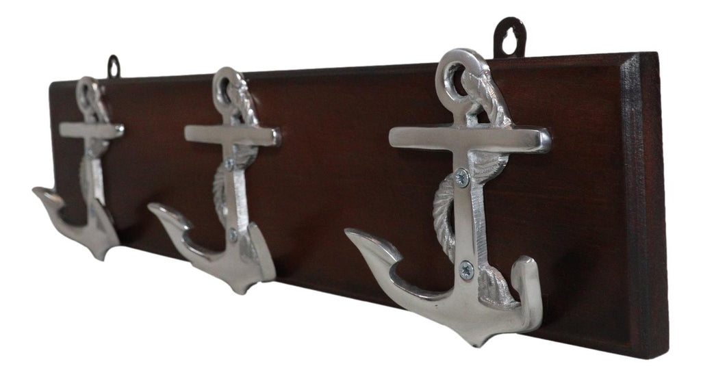 • Elevate your nautical-themed decor with our Ship Anchors On Board Multi Peg Wall Hooks. These exquisite wall hooks are not just functional; they're a work of art. Crafted with precision and plated in nickel, they exude a timeless elegance that complements any space. The ship anchor design adds a touch of coastal charm, making them the perfect addition to your beach house, bathroom, or entryway. Hang your coats, keys, leashes or what have you on this multi peg wall hook board.
