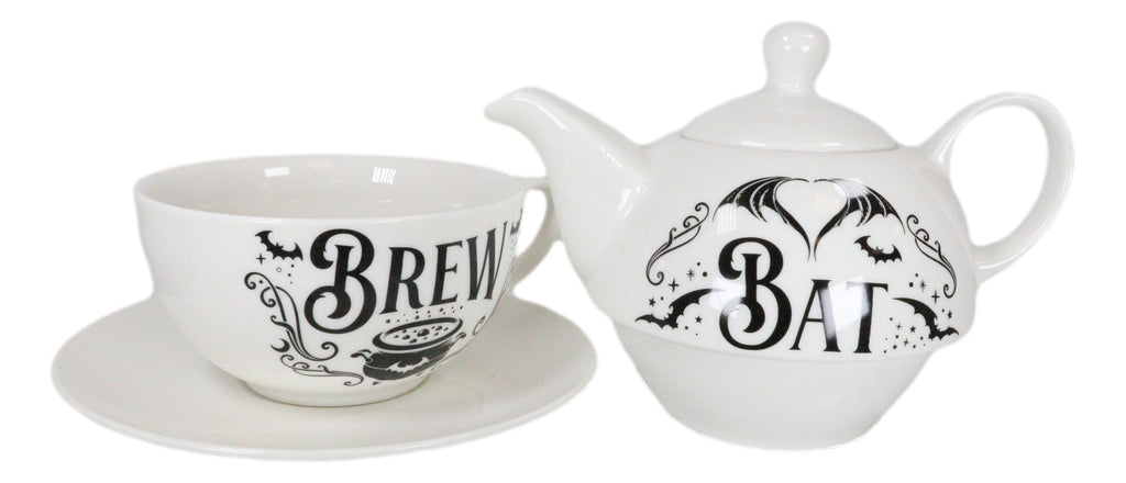 Porcelain Bat Brew Magic Cauldron Stackable Tea Pot And Cup With Saucer Set Of 3