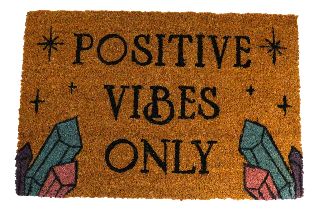 • This Metaphysical Coir Floor Mat each measures 0.75" Thick, 24" Long and 16" Wide approximately. It weighs about 3.75 pounds. • The floor mat is made of coir which is another word for natural coconut fiber. It is equipped with slip resistant vinyl PVC backing. This eco friendly coir mat is excellent for absorbing moisture and trapping dirt. • Welcome good energy into your space with this trendy doormat. Features 'Positive Vibes Only' text accented by magic crystals for promoting love and happiness. Suggested for sheltered and indoor use only.