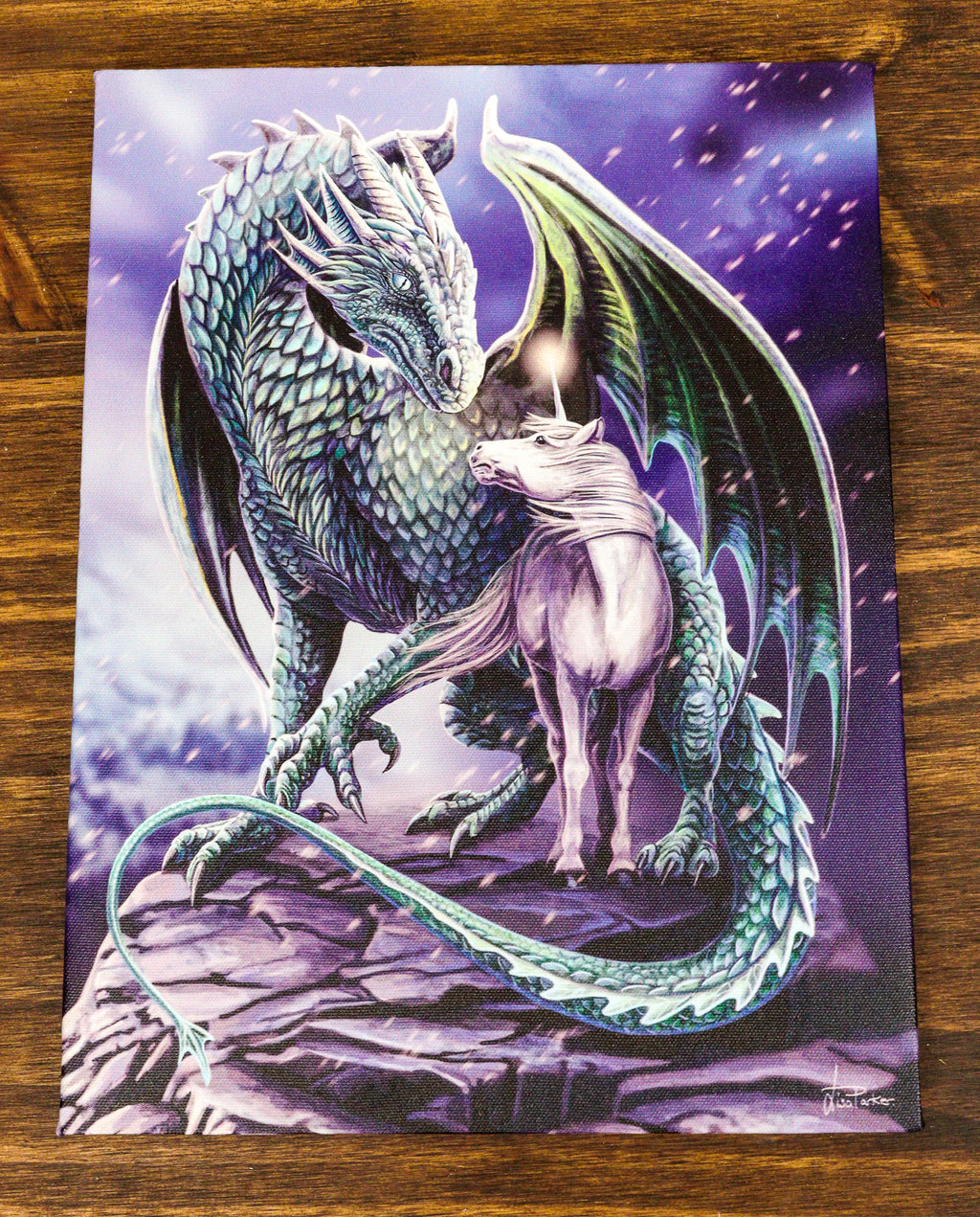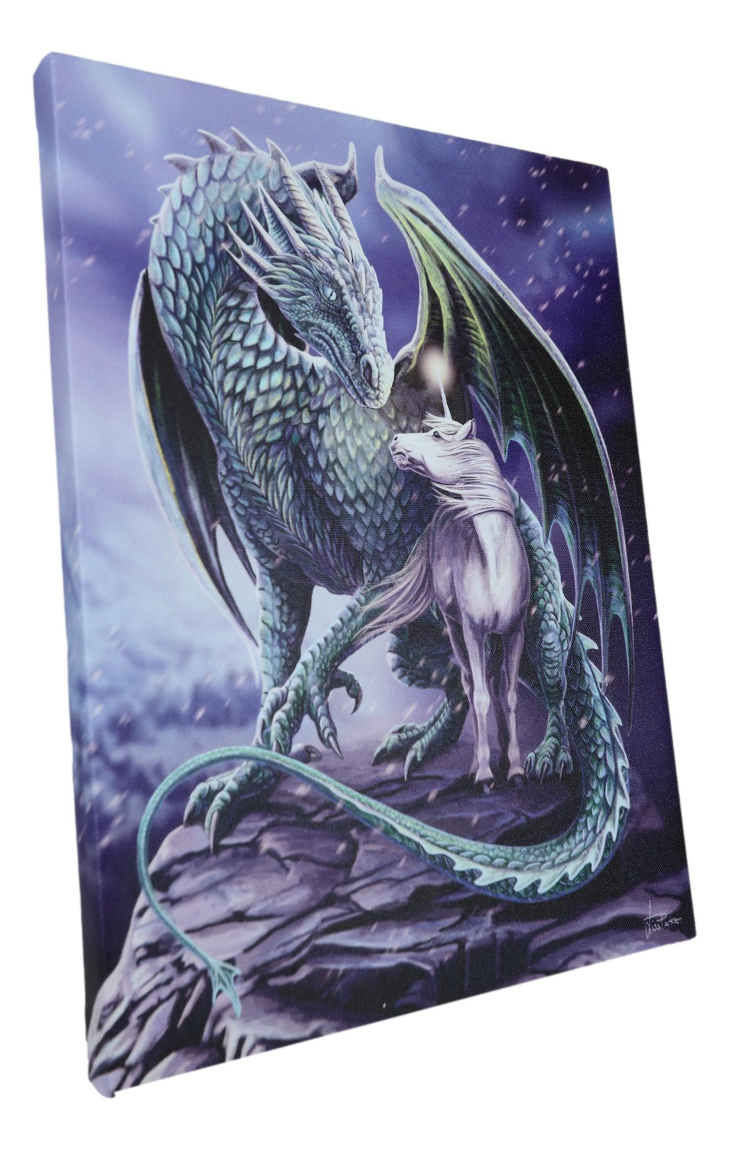 Ebros Protector Of Magick Celestial Dragon With Unicorn Wood Framed Canvas Wall Decor