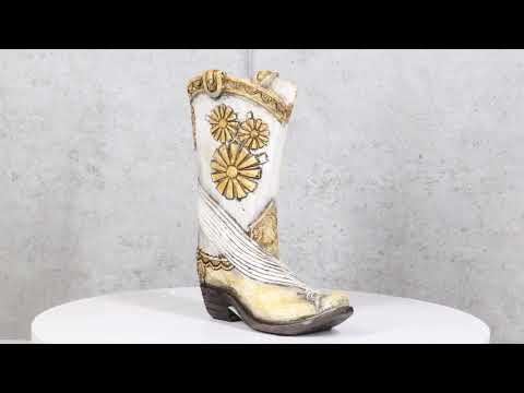• This Rooster Cowboy Boot money bank sculpture is made of high quality polyresin, hand painted and polished individually. Drop coins from the top slot and retrieve at the base by removing the rubber stopper. • This Rooster Cowboy Boot money bank sculpture measures approximately 7" tall, 5.5" wide and 2.5" deep each. It weighs about 8 ounces. • Our curated collection of boots present quality, affordable luxury designer bedroom, bath, kitchen, and home décor designs that exemplify the rustic western style! • Introducing the Western Rooster Cowboy Boot Money Bank, a delightful fusion of rustic charm and springtime splendor. Crafted with intricate detail, this unique money bank features a proud rooster crowing sculpted onto a cowboy boot adorned with vibrant floral blossoms. Perfect for adding a touch of Western flair to your home decor, this money bank embodies the spirit of the countryside with its whimsical design and colorful accents. • Props in photos are not included with the boot. This item is NOT a wearable boot. It is strictly a decorative sculpture.