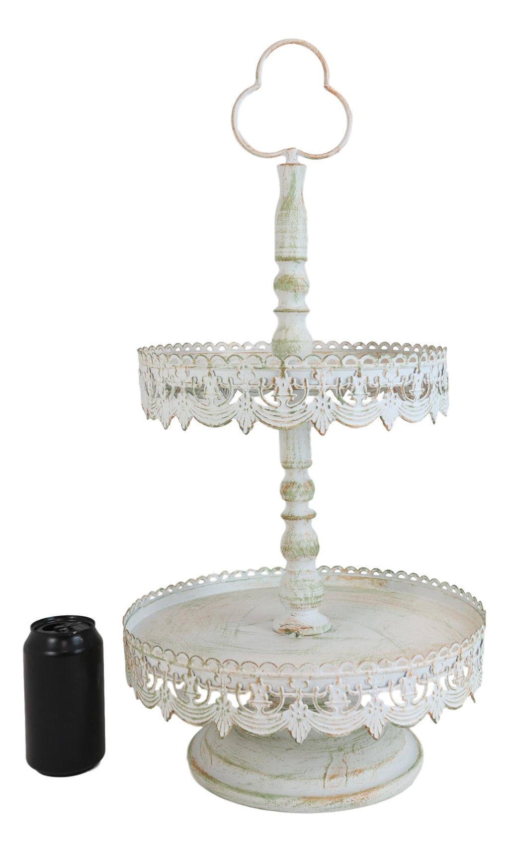 Rustic French Country 2 Tiered Dining Tabletop Metal Food Serving Platter Tray