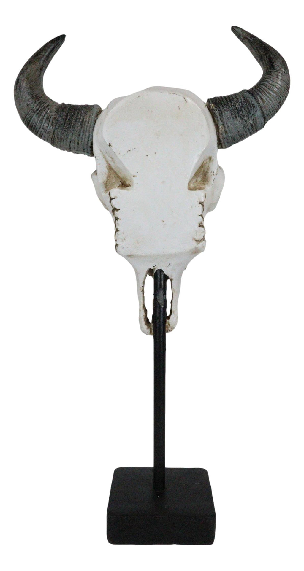 • For a classic drawing room or your own little corner of the world, this Ebros Exclusive pole mount trophy is a rare find! It features an impressive rendition of the bull head skull with masterful scroll lace sculpting on its temple. Mounted on a pole with a sleek black base, the sculpture surely looks like a museum replica!