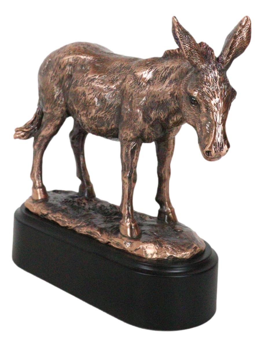• Created with great detail in a bronze finish, this statue is a great representation of a donkey or mule. This statue would make a great political gift for Democrats. Mounted on a decorative base, this sculpture is perfect as a decorative piece or as an award sculpture.