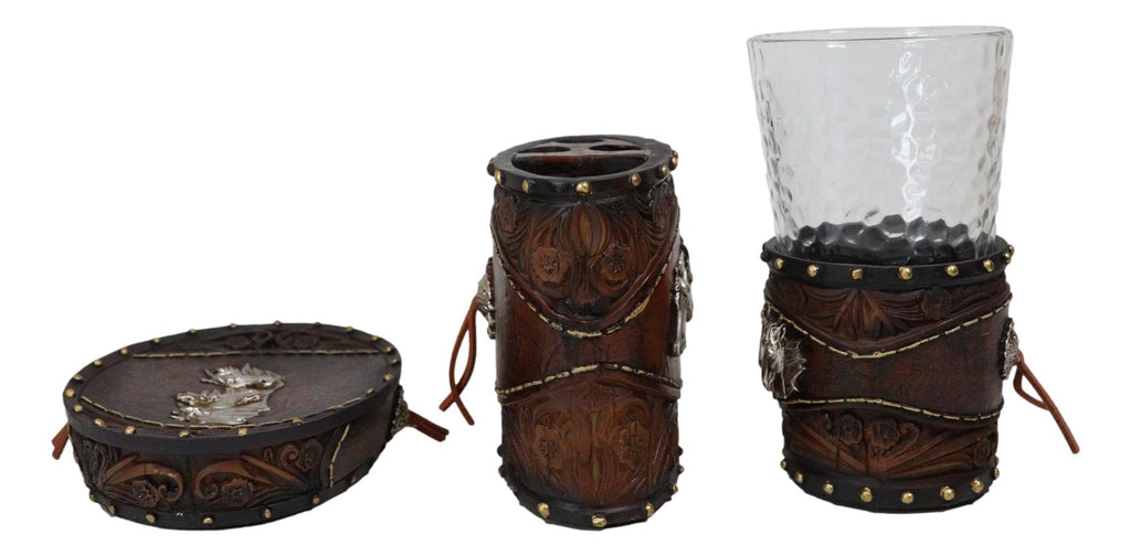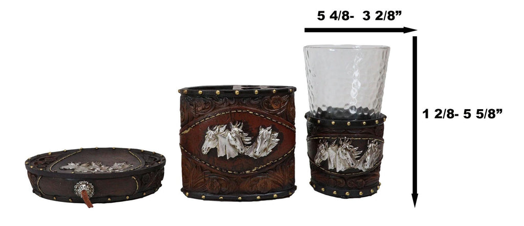 • Western decor is all about spunk and spirit, bringing together the desert beauty of the southwest and all its inhabitants with rugged cowboy charm and rustic good looks. This bathroom accessory showcases intricate floral scrollwork and running horses in silver at the heart of the design.