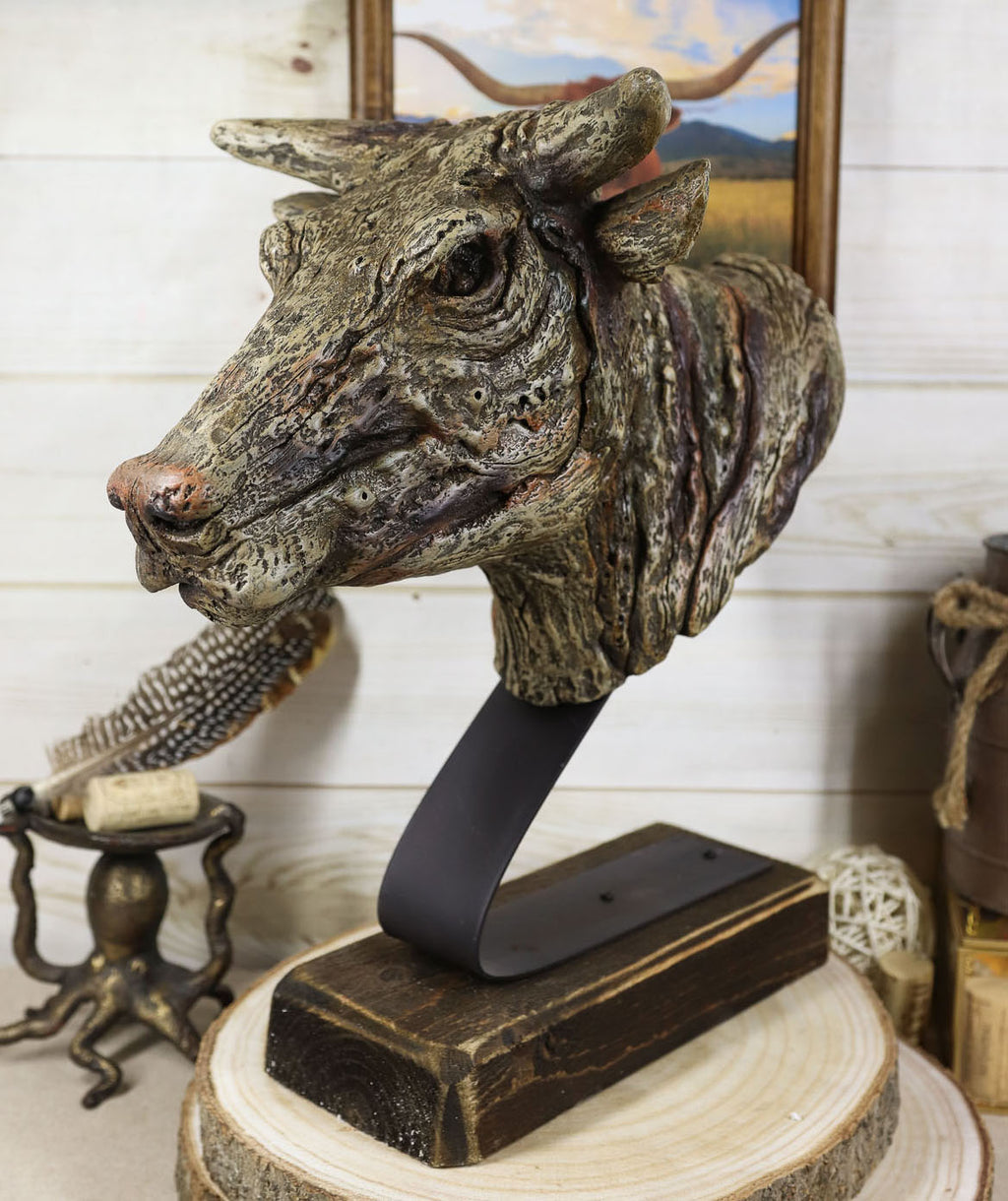 Ebros Rustic Wildlife Faux Driftwood Finish Bull Steer Cow Skull Bust Figurine On Base