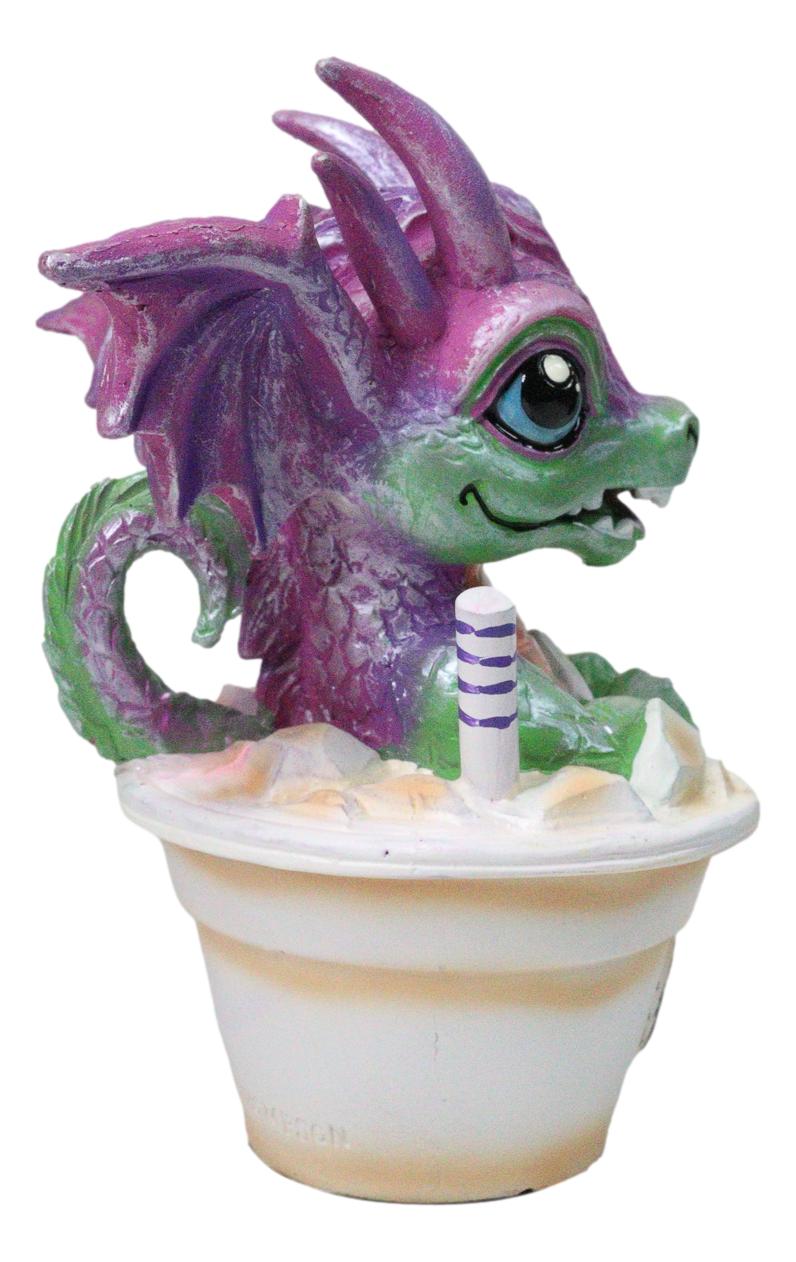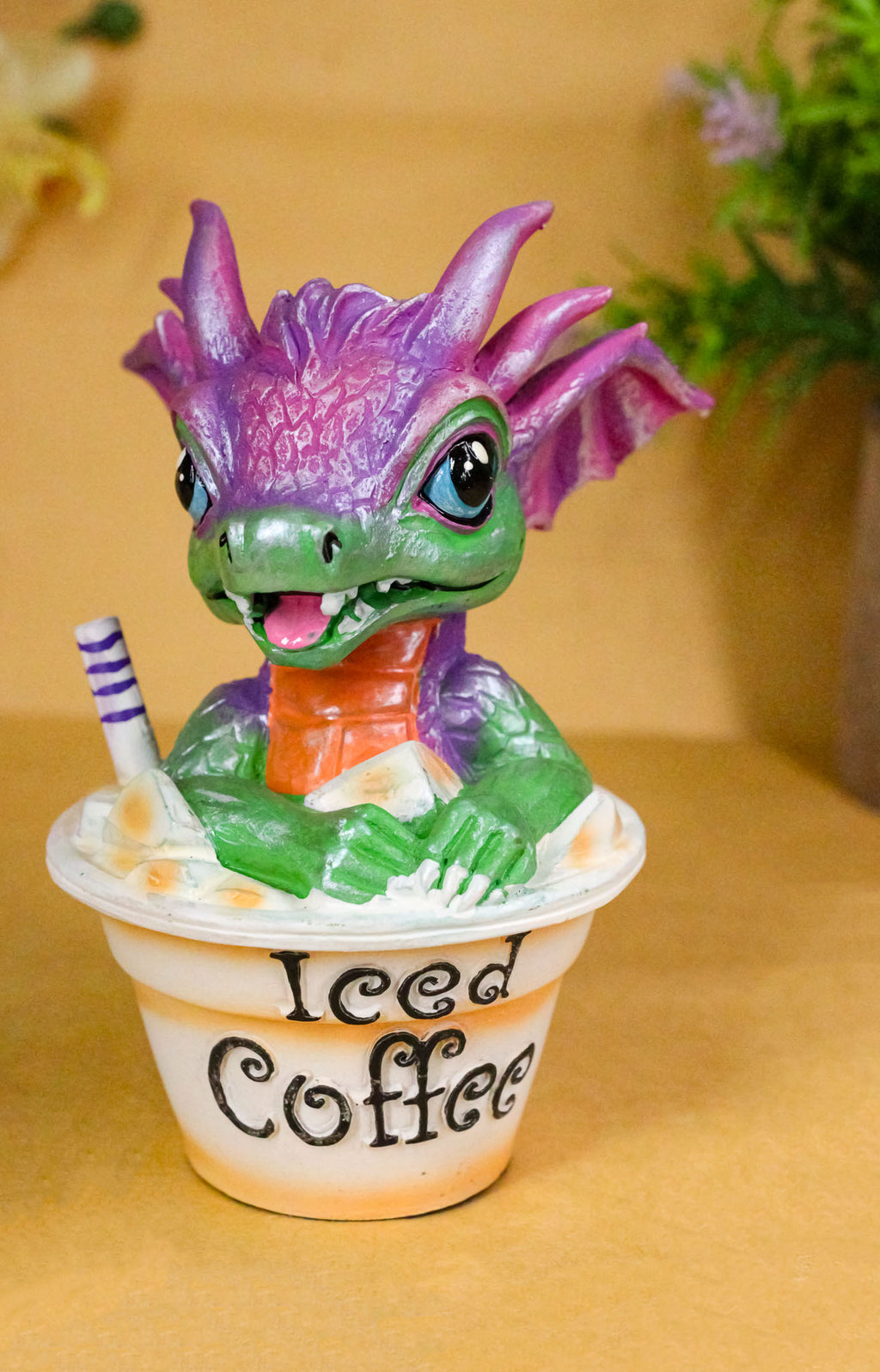 • This Whimsical Dragon In Cup Figurine is approximately 5" tall, 3.5" long and 4" deep. It weighs about 13 ounces. • This Whimsical Dragon In Cup Figurine is made of designer composite resin, hand painted and polished individually. Color Tone may vary. • This is a gorgeous and stunning piece of art. Our sculptors and painters have done an excellent job in creating great details to the dragon. • Sometimes only an iced coffee hits the spot-and Sarah the dragon knows it! Part of Ruth Thompson's new Drink Dragons line, this figurine features a cute purple-and-green dragonling lounging in a cup of her favorite chilled brew. A fun addition to any fantasy collection and guaranteed to bring a smile!
