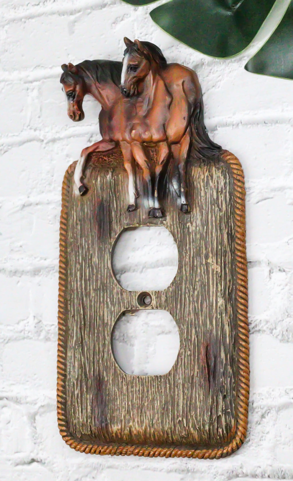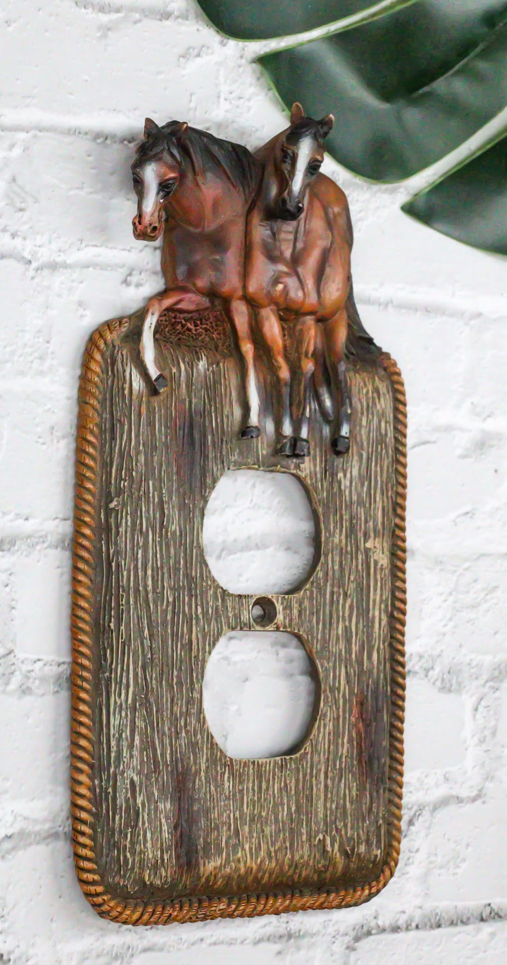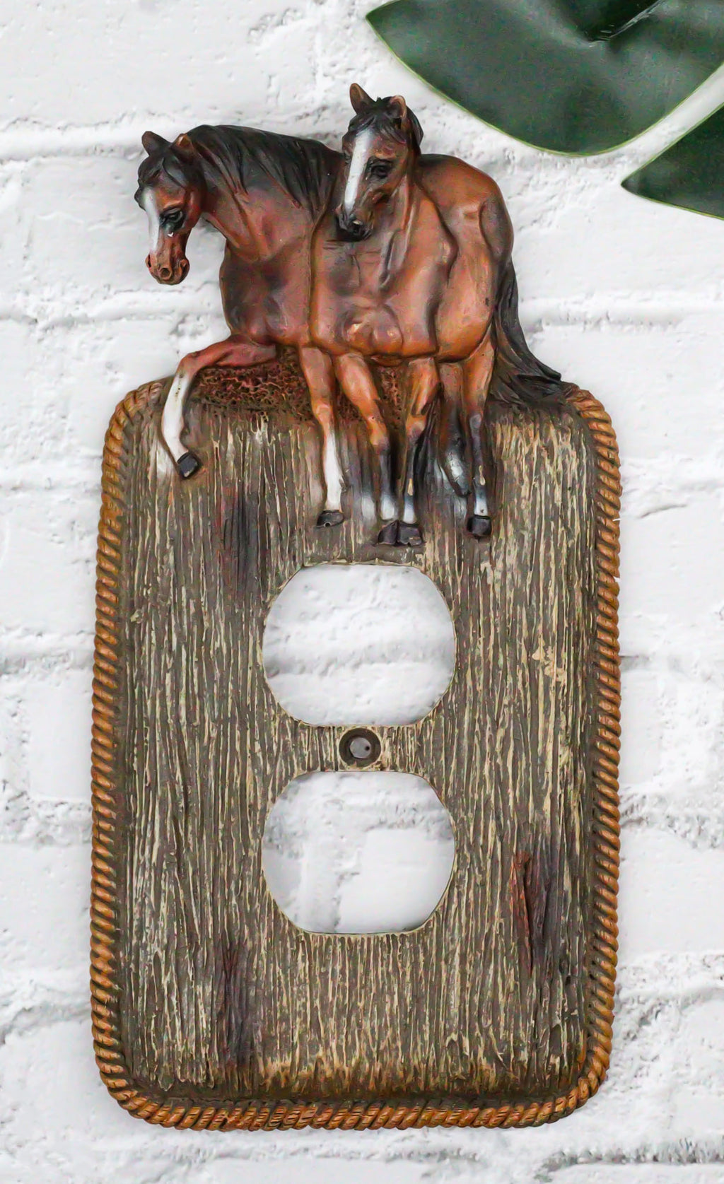 • These Rustic Western Horses Wall Electrical Cover Plates are made of polyresin, hand painted and polished individually. Because it is a resin product, it can break if you over-tighten with the screw driver.