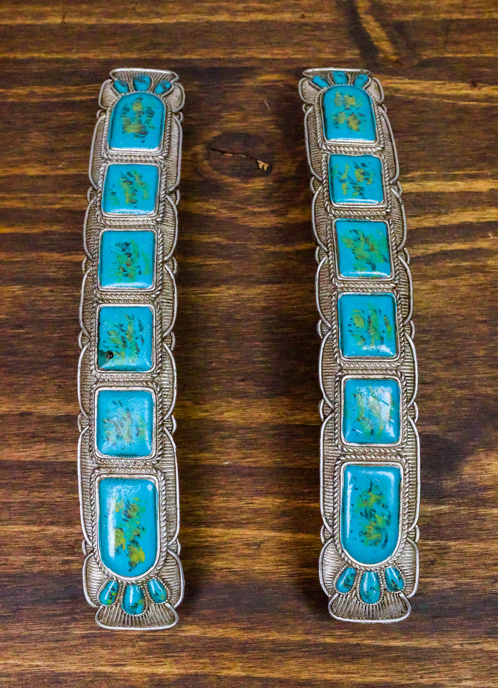 Set Of 2 Rustic Western Silver Turquoise Boho Drawer Cabinet Door Bar Pulls
