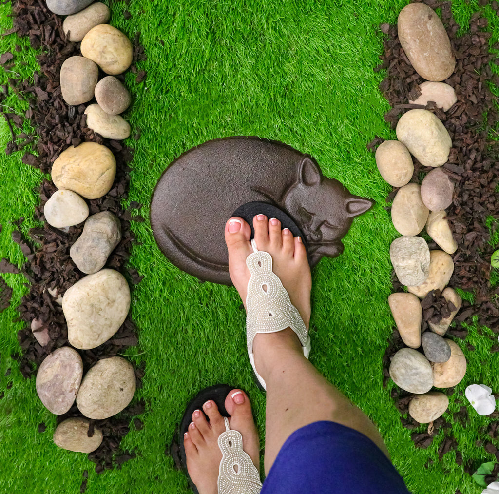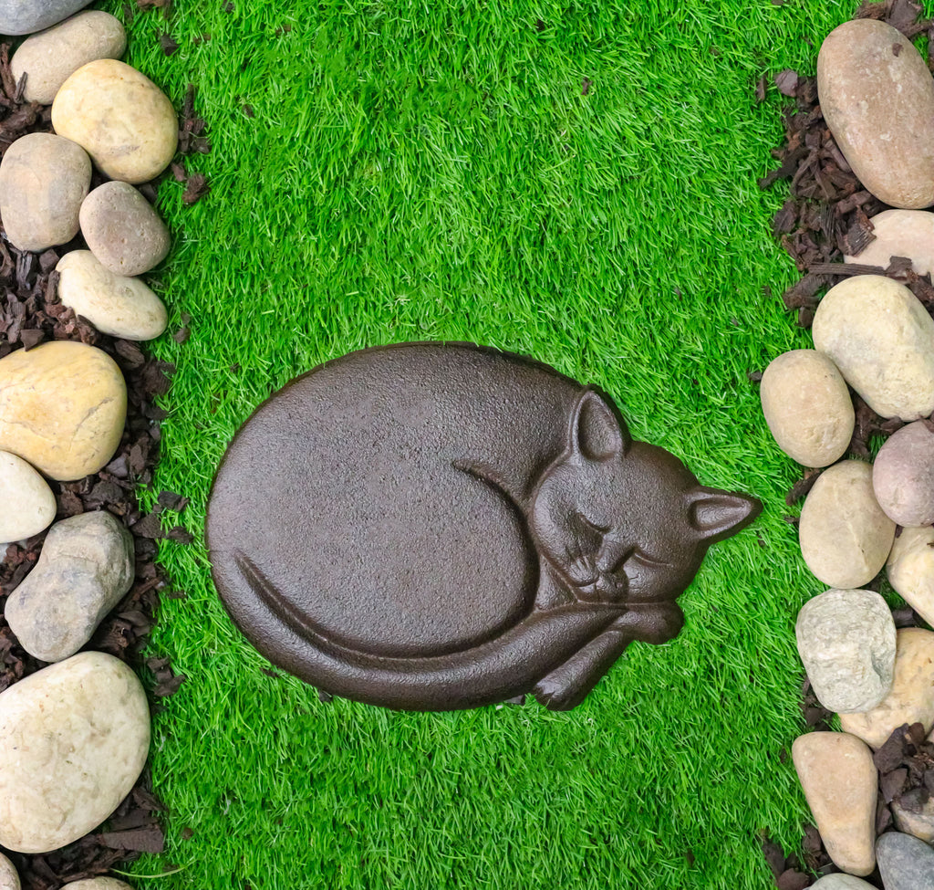 Set Of 3 Cast Iron Sleeping Kitty Cat Garden Stepping Stone Pave Foot Steps