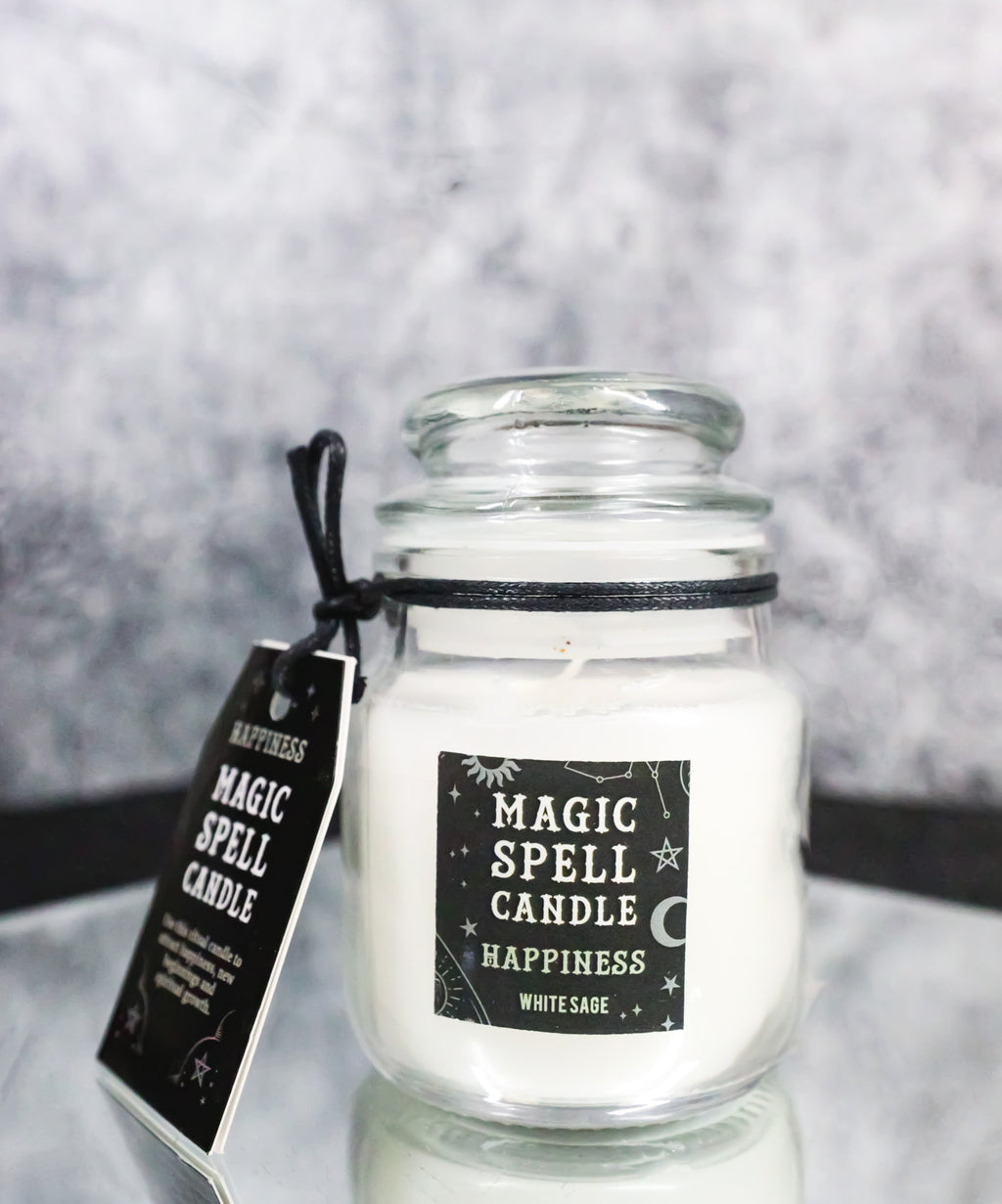 • This Glass Jar Spell Candle is made of paraffin wax in various scents. • Approximate Burn Time 15 hours. Please practice caution when burning and never leave lit candle unattended. • Candle Dimensions: 3.25" high and 2.5" diameter. It weighs about 8 ounces each. Made in India. • This small, white jar candle comes in a lovely white sage fragrance and is perfect for accompanying spells of balance and happiness. Whether used as alternative decor or as a sacred ritual tool, this candle will attract all the best things life has to offer. • Props in photos are not included with the candles. This listing comes as a pack of 3 candles of the chosen scent.
