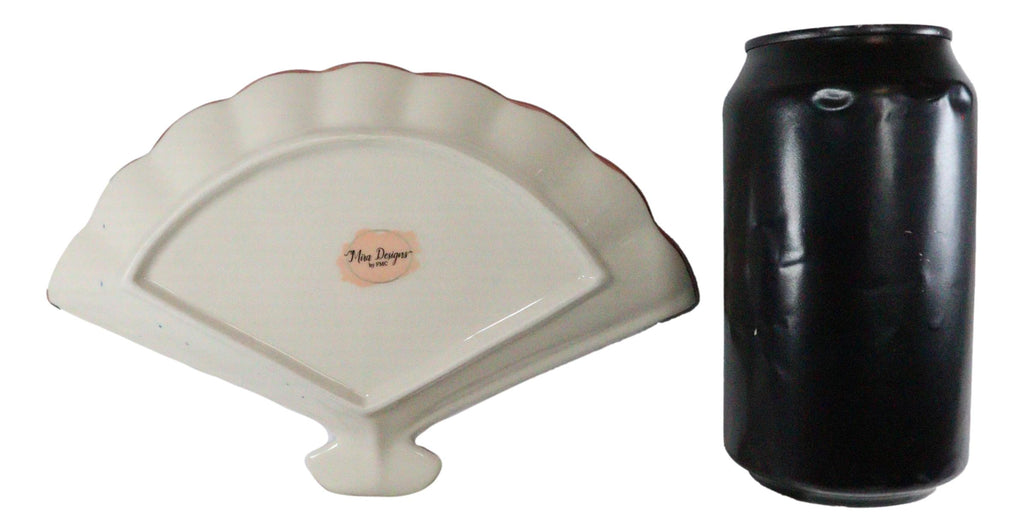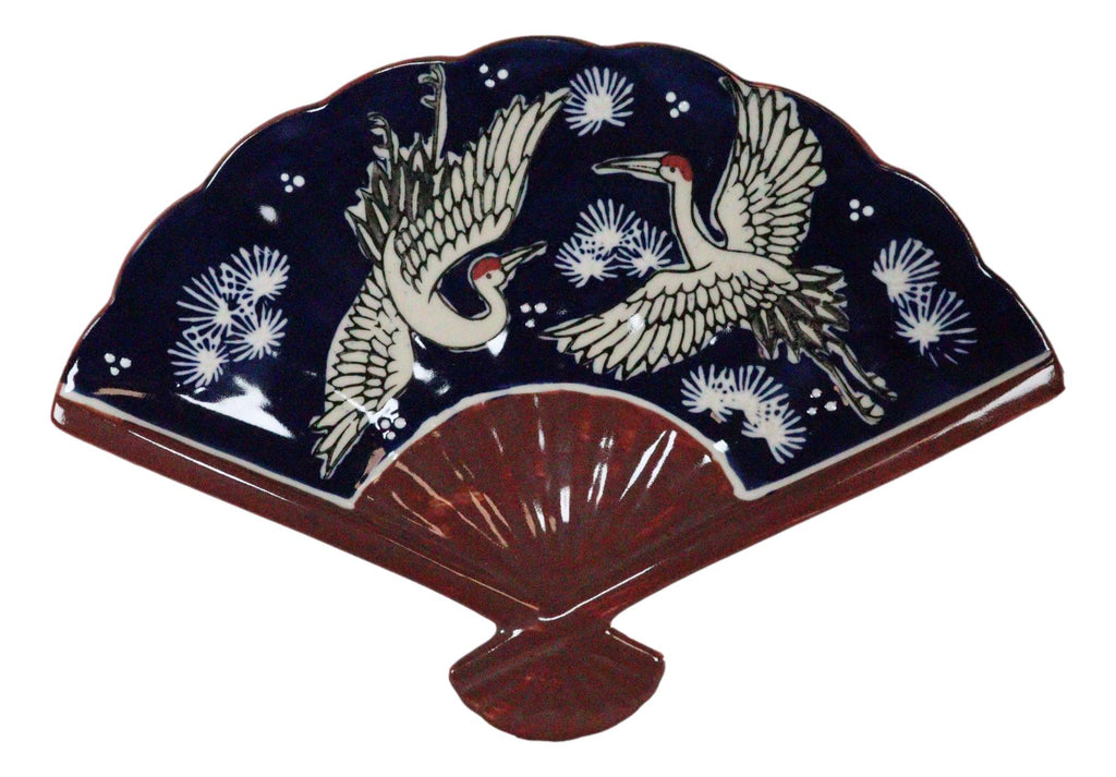 Ebros Set Of 4 White Storks Night Sky Oriental Fan Shaped Appetizer Sushi Plates
