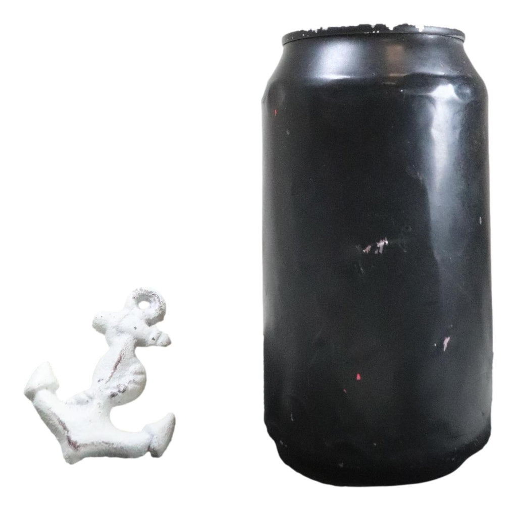 • Each of these iconic marine sculptural drawer pulls measures 1.75" wide, 2.25" high and 1.25" Deep. Each piece weighs about 2 ounces. • These iconic marine sculptural drawer pulls are made of cast iron, hand painted and polished individually in aged white finish. • Add coastal style and charm to any drawer in your home with this Whitewashed Distressed Ship Anchor Knob/Pull. Its versatile color looks good with most furniture colors. Embossed details and a distressed finish make it truly special. • This listing is for a set of 6 pieces.