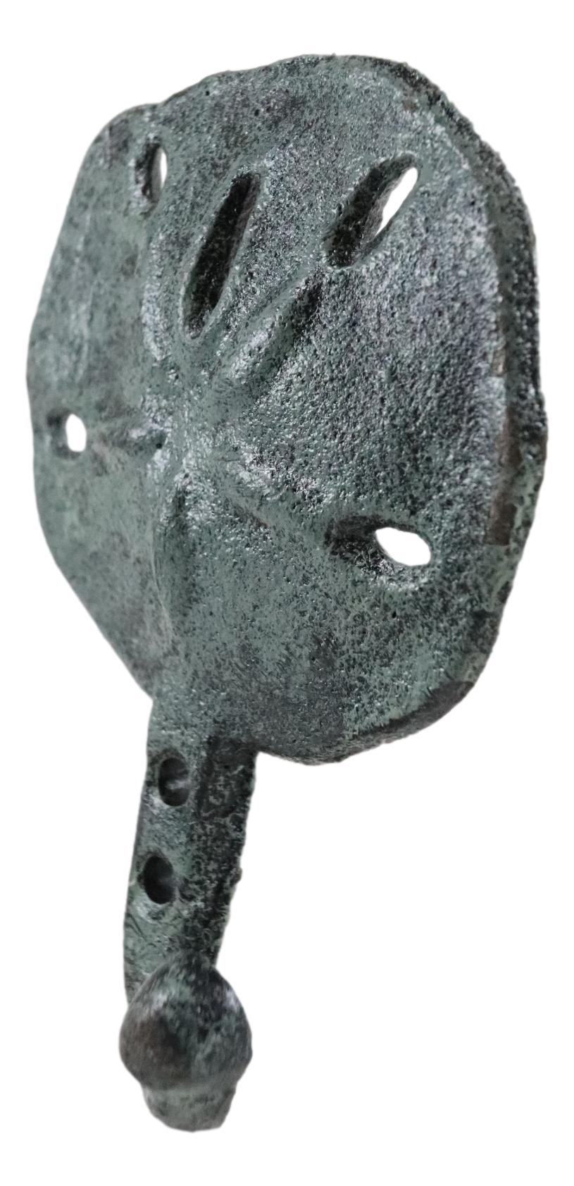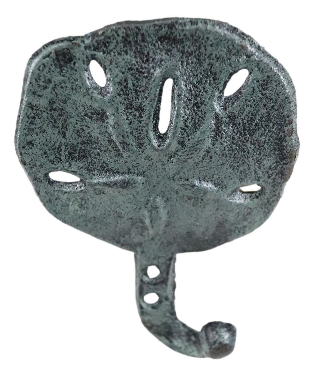 • This sand dollar wall hook is made of cast iron, with a verdigris finish.